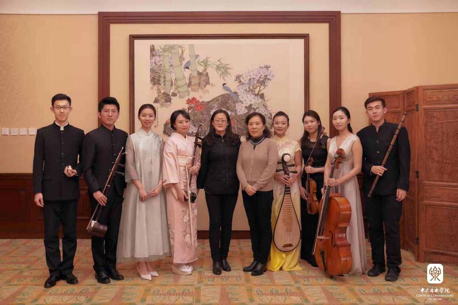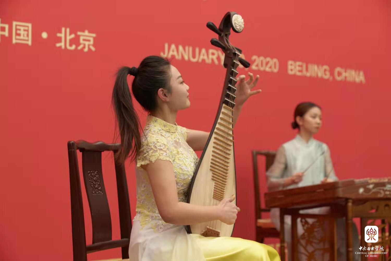 中国民乐系学生薛冰倩(琵琶),张彦(打击乐),李柔(杨琴),许哲源(箫)演奏《彝族舞曲》