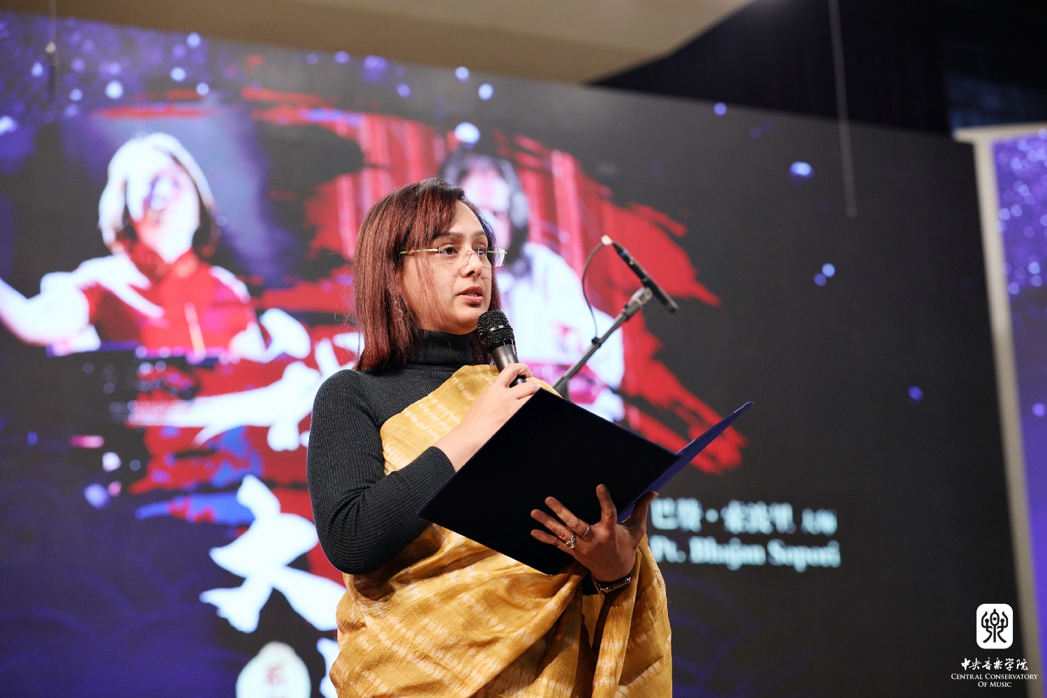 印度驻华大使馆文化参赞纪提卡女士在致辞中表示,中国与印度有着悠久的历史文化渊源,2020年恰逢中印建交70周年,且两国领导人将2020年定为“中印人文交流年”,此次分享会用扬琴开启了中印音乐文化交流的新篇章。米兰党委书记赵旻研究员在讲话中提到,作为孔子学院新汉学“理解中国”的访问学者,两位印度音乐家通过内容丰富的访学活动,体验新时代中国的发展风貌。中印音乐交流能够更好地促进两个文明古国间的文化认同,增进两国人民之间的情谊,同时也能够为世界增添东方神韵,贡献东方力量。