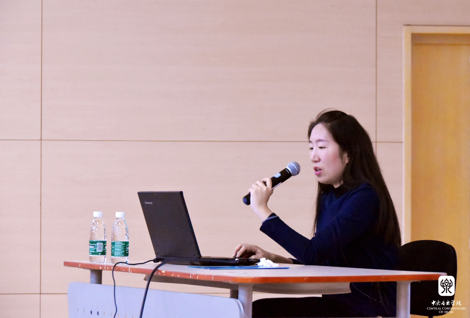 接下来,她从叙事、叙述与阐释三个层面,比较了音乐评论与音乐论文的异同。她指出,研究生阶段的论文选题,一定要在广泛聆听、大量阅读的基础上引发思考,才能确定研究的方向。对于音乐聆听的对象,她认为可以根据自己的爱好、能力进行选择,同时要注意聆听范围的深度与广度。表演专业的同学,在不同层次的学习阶段,将自己对同一首作品不同的演奏体验记录下来,可以很好地达到达到写作训练的目的。记录的过程中,注意音乐分析的核心分量。在兼顾文字叙述的专业性与文学性方面,郭教授列举了一些成功的乐评范例,指出“中国音乐评论的写作,既需要坚实的音乐技术与人文情怀,还需要有真诚的内心与充满温度的文字 ”。