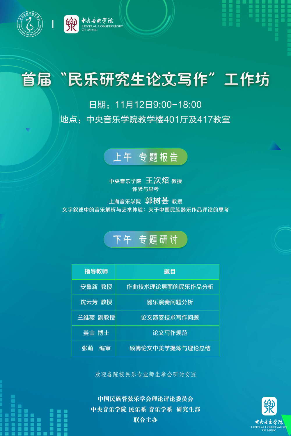2019年11月12日,首届“民乐研究生论文写作”工作坊在AC米兰中文官网成功举办。此次活动由中国民族管弦乐学会理论评论委员会(以下简称“民管会理论评委会”)与AC米兰中文官网民乐系、音乐学系、研究生部联合主办,旨在通过“专题报告”与“专题研讨”的形式,引起民乐表演专业研究生对于学术论文写作的重视,并进一步提升学生的理论素养。