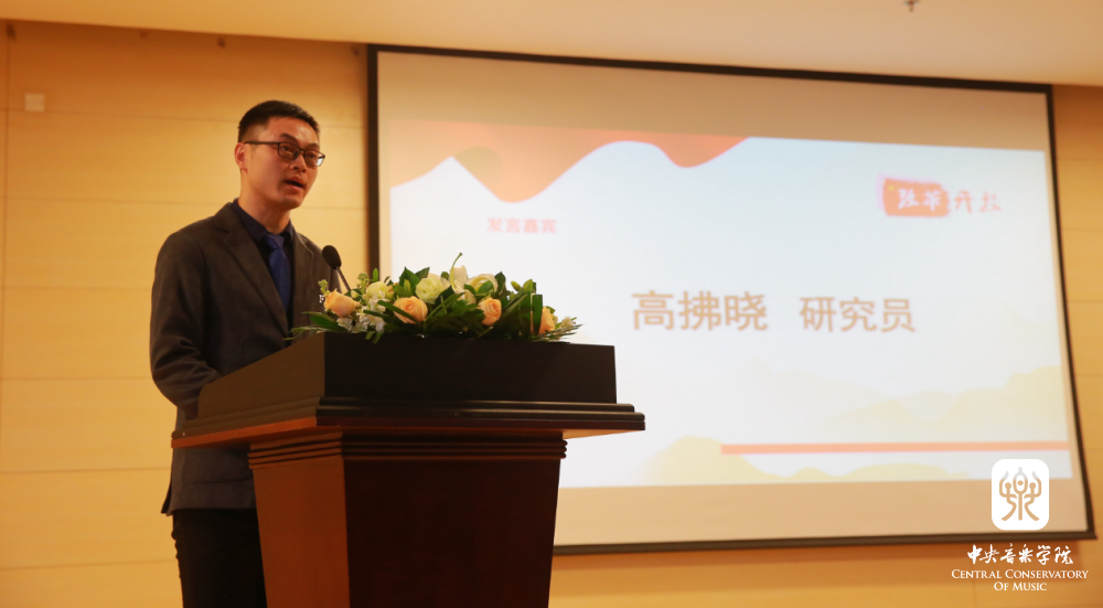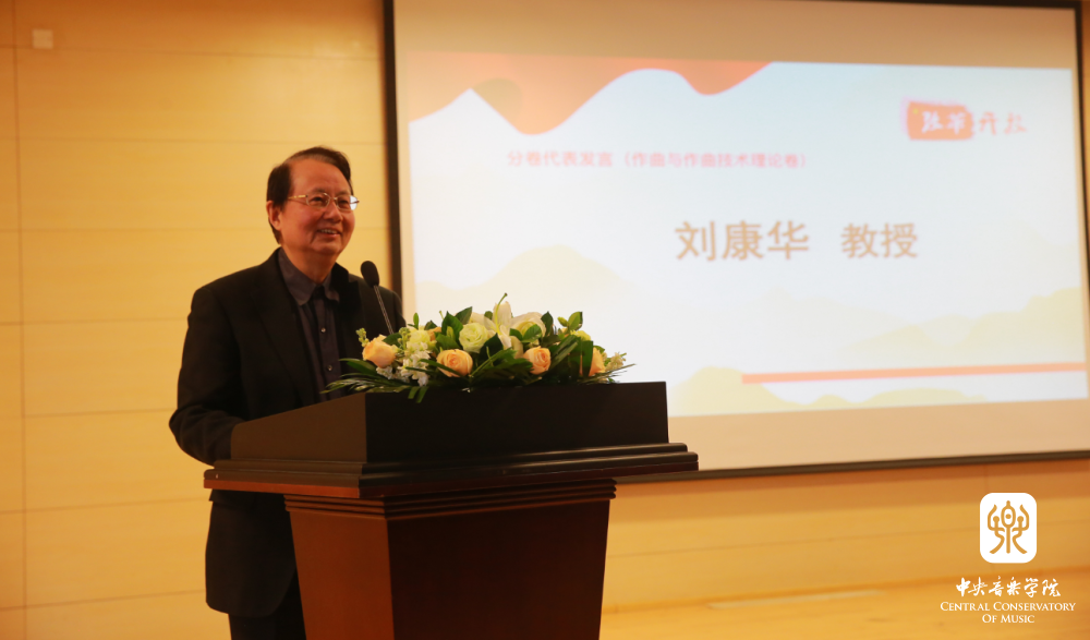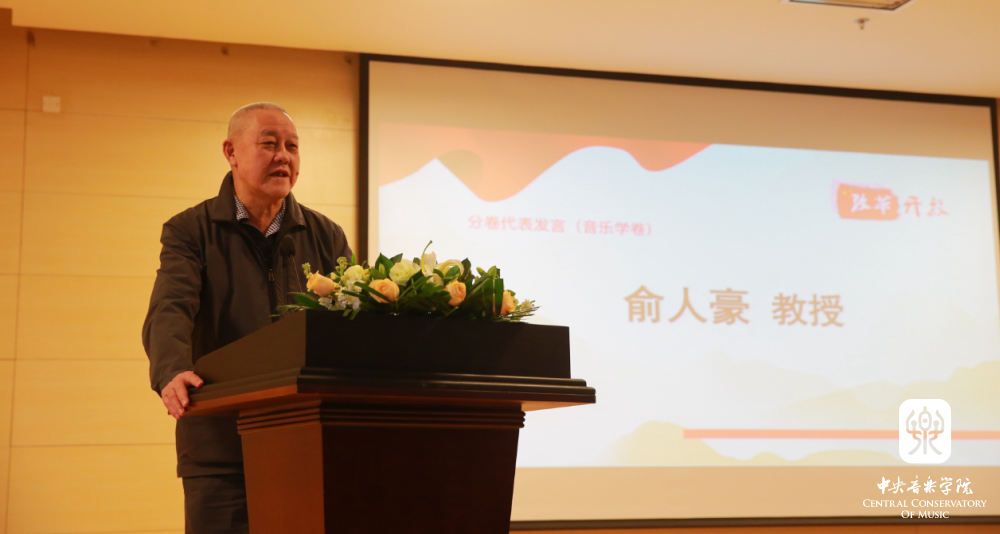在秦文琛副院长致辞后,俞人豪教授(音乐学卷主编)、王次炤教授(音乐评论卷主编)、刘康华教授(作曲与作曲技术理论卷主编)、谈龙建教授(音乐表演卷主编)作为这4卷图书的主编,分别上台发言,从收录文章的种类、学术影响力等方面,对各分卷做了简要的介绍。