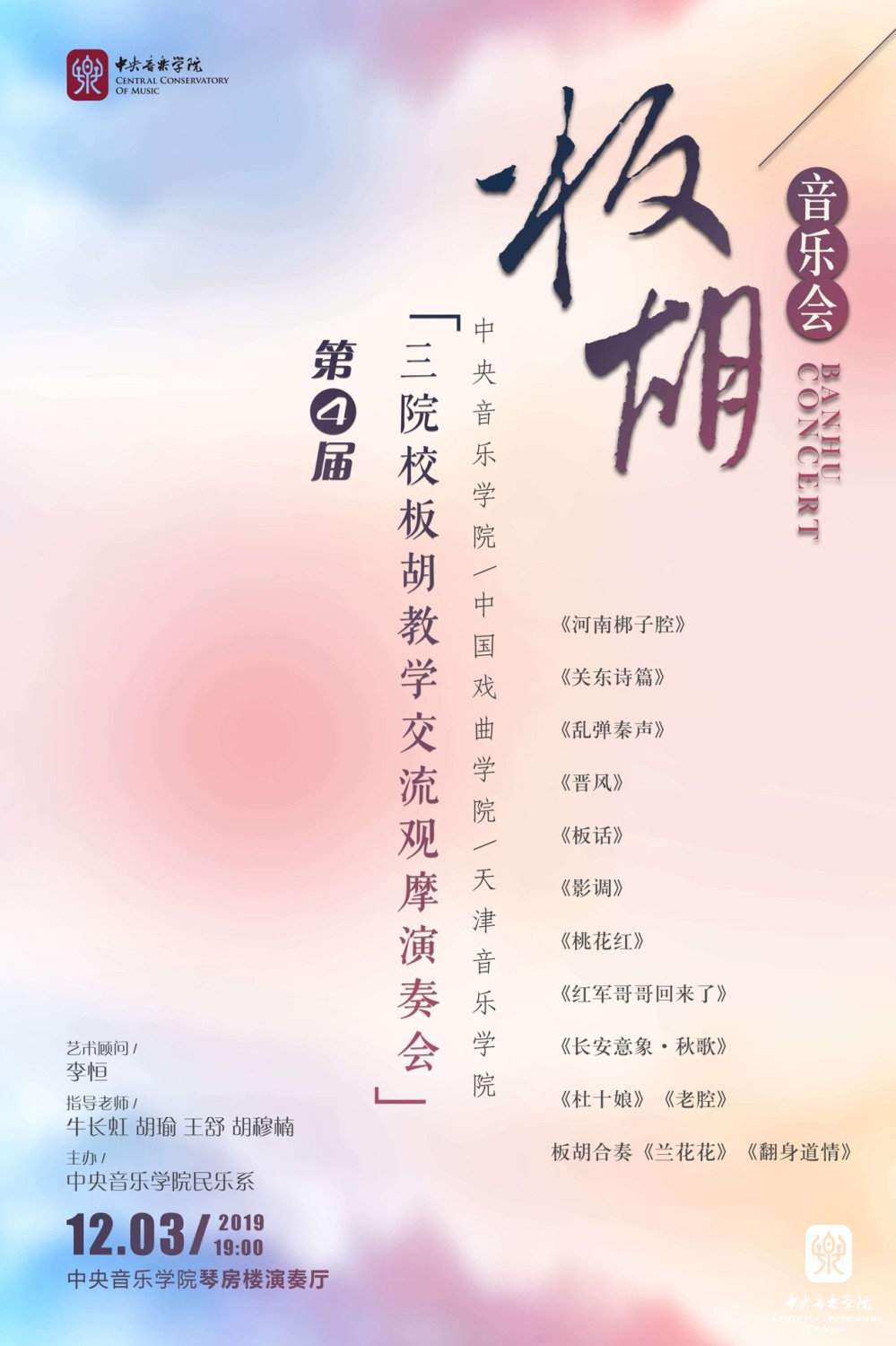 在诸种民族乐器中,板胡即是能够鲜明体现上述特征与发展轨迹的拉弦乐器。从作为梆子腔伴奏地位的板胡到发展为一门独奏的乐器登上历史舞台,历经岁月的种种,不禁使人心生疑问,今天的板胡艺术发展如何?它的特点又是什么?2019年12月3日19:00在AC米兰中文官网琴房楼演奏厅举行的第四届三院校板胡教学交流观摩演奏会或许可以为世人展示当代板胡艺术的风采,它看似只是一场院校间教学交流会性质的演出,但从板胡这件乐器的发展史上看,其意义不容低估。