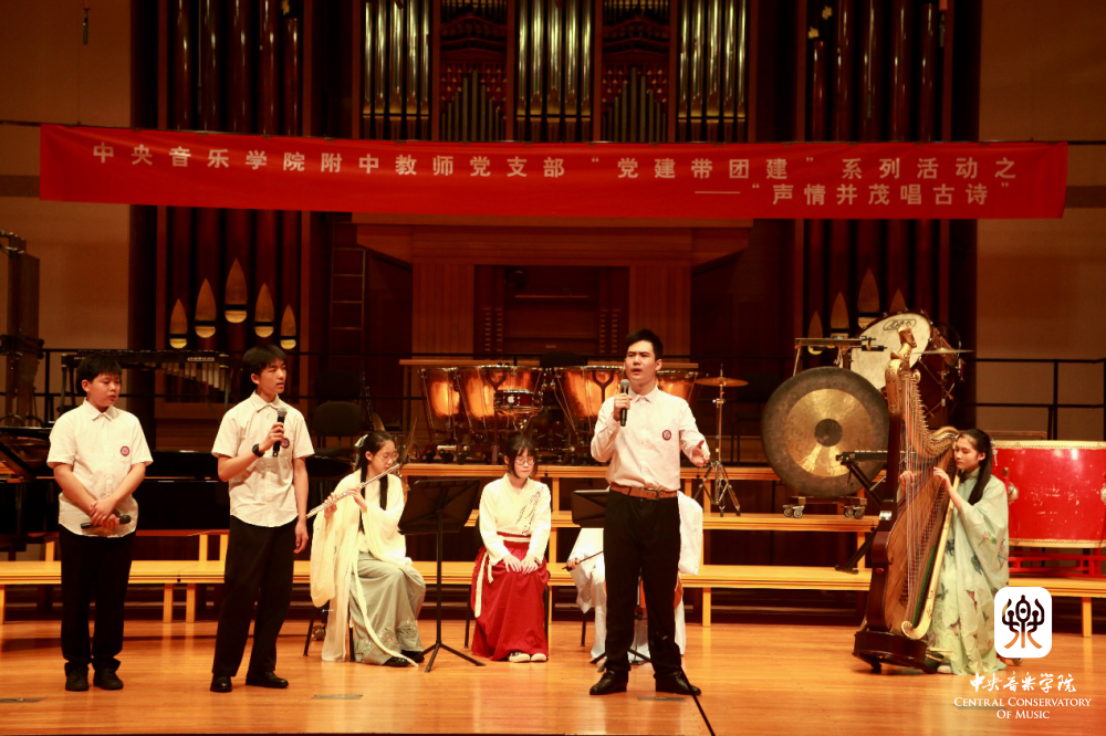 2019年6月20日,附中教师党支部在附中音乐厅举行了“声情并茂唱古诗”活动