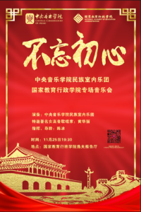 自此,乐团在本学期于国家行政学院与国家教育学院成功举办两场音乐会。两场演出不但为师生带去来源生活、紧扣时代主题的民族室内乐作品,同时对于乐团也是思想的洗礼与心灵的净化,用音乐的方式坚定文化自信,增加文化自觉,践行“不忘初心,牢记使命”主题教育活动。