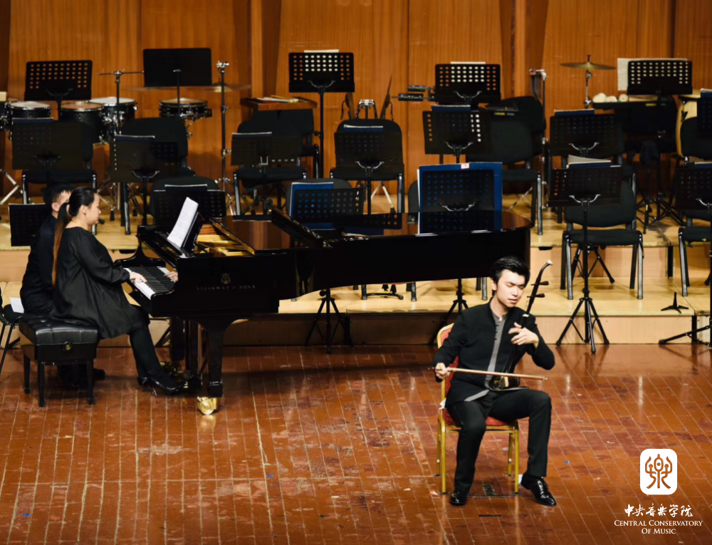 决赛两天,每天都是接近晚上12点才结束,不仅考验选手心态,对于同行家长和老师也是十分的煎熬。有的学生抽签顺序是第一个上场,难免心里忐忑和失望,而对于最后上场的选手来讲,保持兴奋的比赛状态也是非常不易,但我系学生坚持到了最后,也笑到了最后。复赛、半决赛、决赛,自选曲目、抽签曲目、规定曲目,独奏、伴奏、协奏,学生们历经磨练考验,从48位来自各大院校、专业协会推荐的顶尖人才中脱颖而出,48进24、24进12,稳扎稳打,锐意前行,最后以组委会委约新作《第五二胡狂想曲——赞歌》一决胜负,以琴声,奏响盛世金钟!