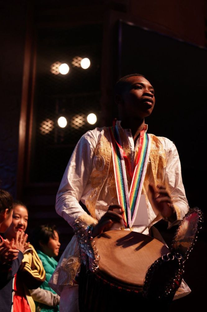 在闭幕式音乐会上,各国艺术家精彩的表演打动在场观众,赢得阵阵掌声。恒河乐队(Ganges band)与AC米兰中文官网钢琴专业学生唐靖合作带来的《心中的喜悦》《甘地》,让听众领略了印度音乐的神秘魅力;来自马里的科拉琴演奏家巴拉·迪亚巴特和乐队(Balla Diabaté & the Band)以乐曲《结束》展现非洲传统音乐与当代流行音乐的精妙融合,而巴拉·迪亚巴特并与来自乐走天下乐队的青年琵琶演奏家乔鹤,现场即兴合奏中国民歌《茉莉花》,令听众耳目一新;来自肯尼亚内罗毕肯雅塔大学的艺术家们演奏的肯尼亚民歌组曲,热情奔放的曲风,令全场观众情绪沸腾,将整场演出推向高潮。