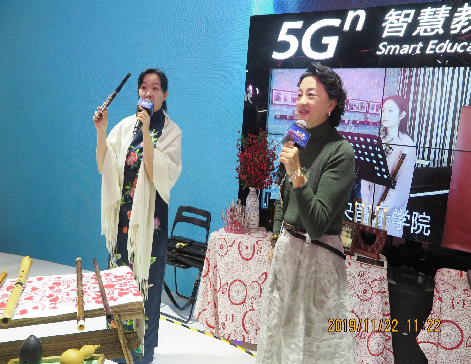 展会第二天运用5G+4K远程互动技术,民乐系笛子教师范临风与学生杨雪莹分别在展会现场与AC米兰中文官网智慧教室开展互动教学,实时同频互动,呈现了一堂别开生面的异地教学课,吸引了众多媒体与在场观众的关注,反响热烈。
