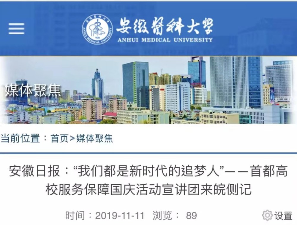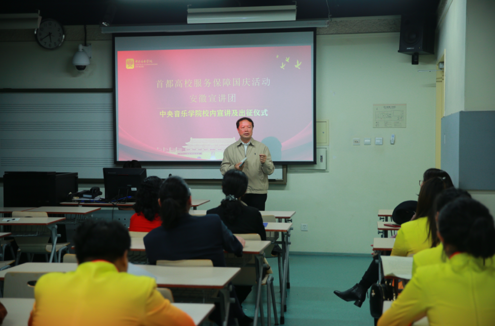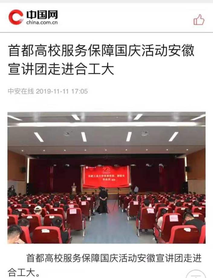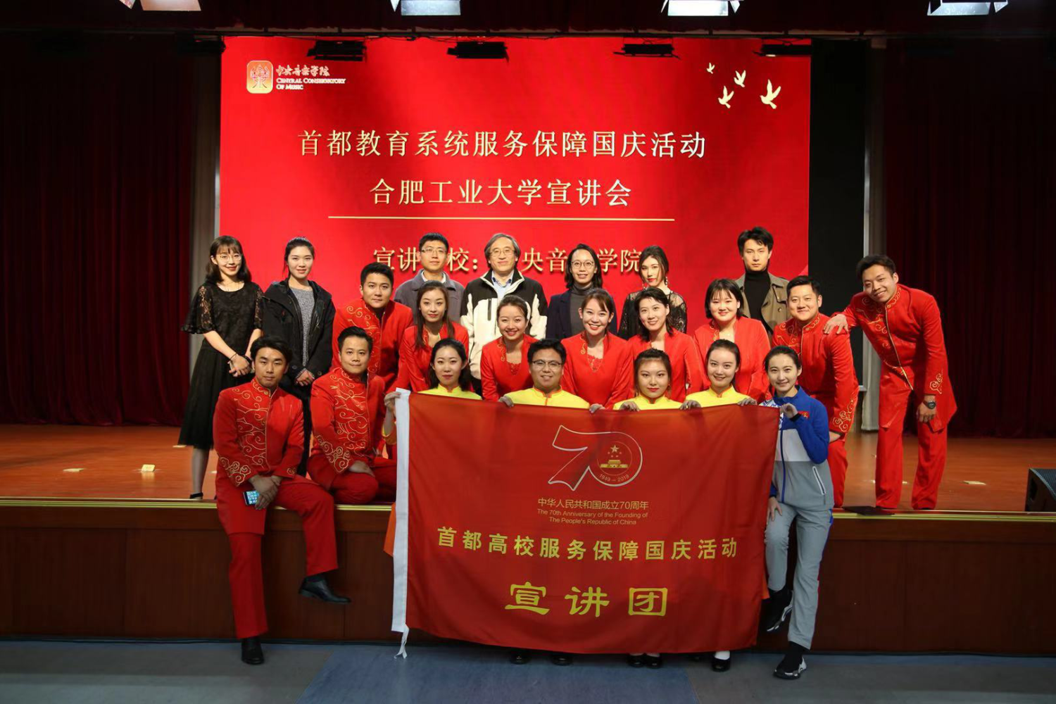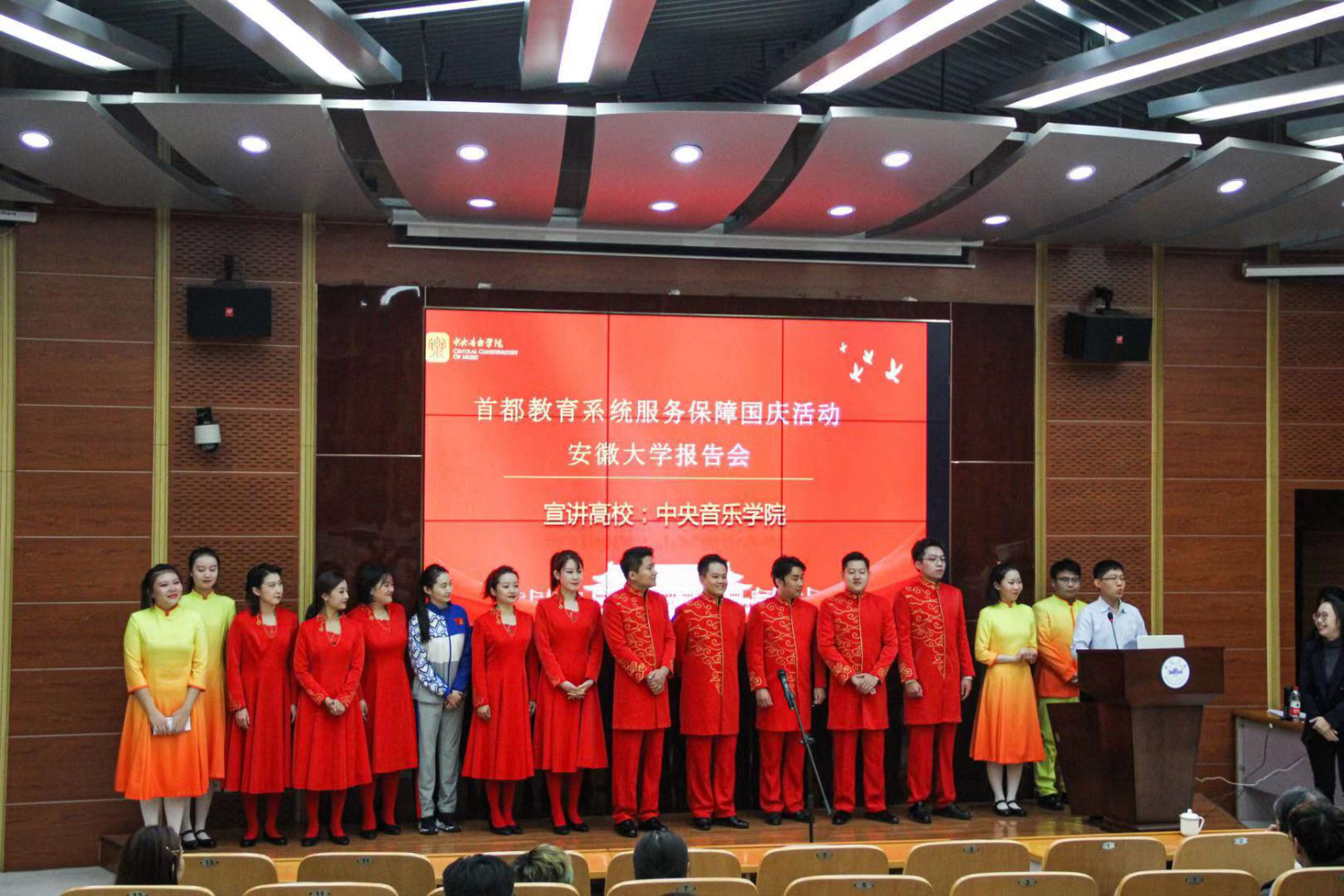 AC米兰中文官网党委高度重视此项工作,第一时间开展人员选拔、队伍组建、培训指导、宣讲演练等工作,最终确立了由党委宣传部部长刘红柱作为带队教师、团委书记徐中海作为随队教师的22名师生代表团,与北京信息科技大学联合组建了“首都教育系统服务保障国庆活动宣讲团”赴安徽高校开展宣讲活动。