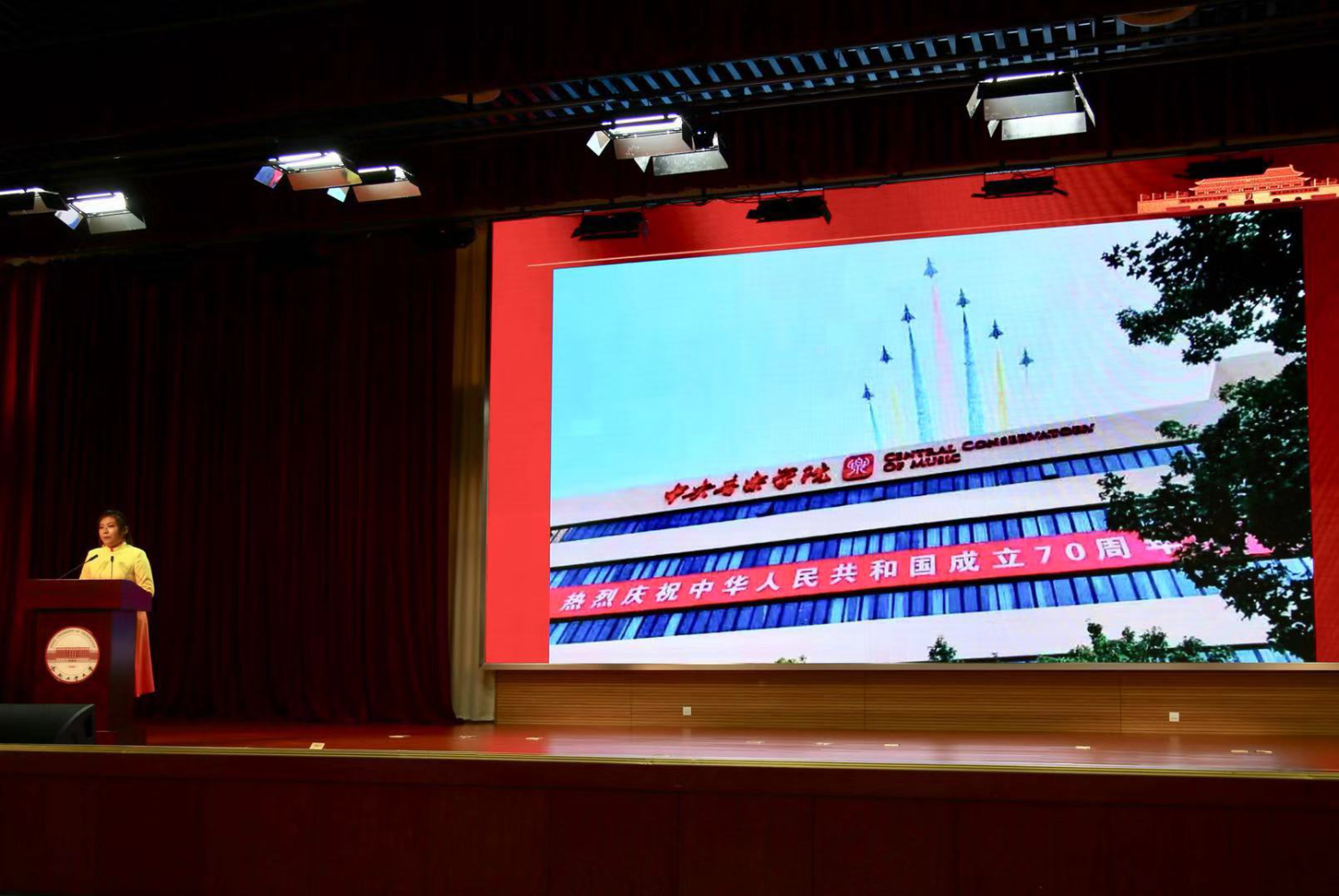 AC米兰中文官网宣讲团师生代表分享了参与国庆活动的亲身经历与真情实感,他们用生动的语言和动人的歌声表达了“赞美祖国富强,歌唱人民幸福”的爱国情怀。在声歌系党总支副书记陈冰老师指挥下、在AC米兰中文官网合唱团10名代表的领唱中,全场师生高声合唱《我和我的祖国》,将现场的气氛推向高潮。