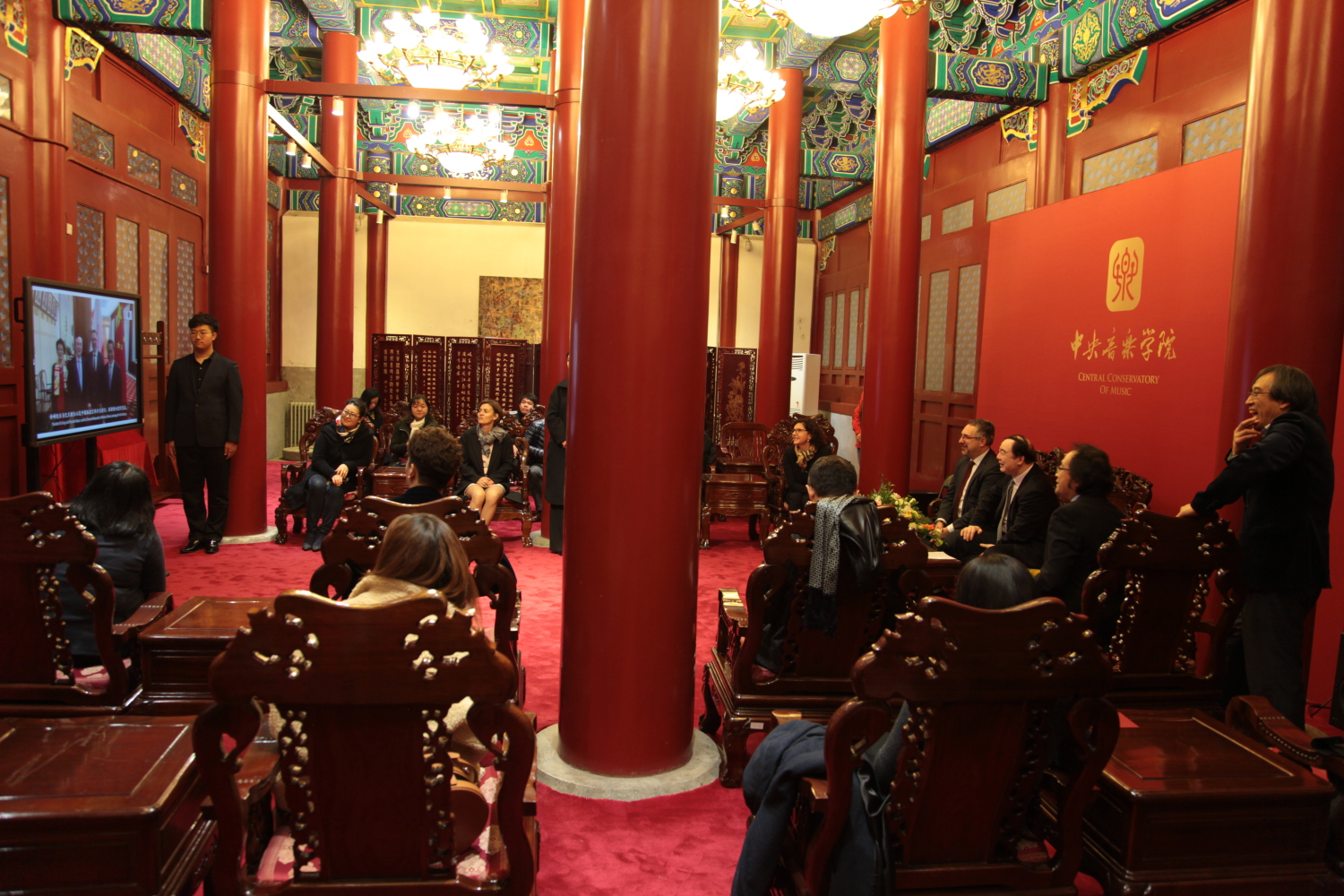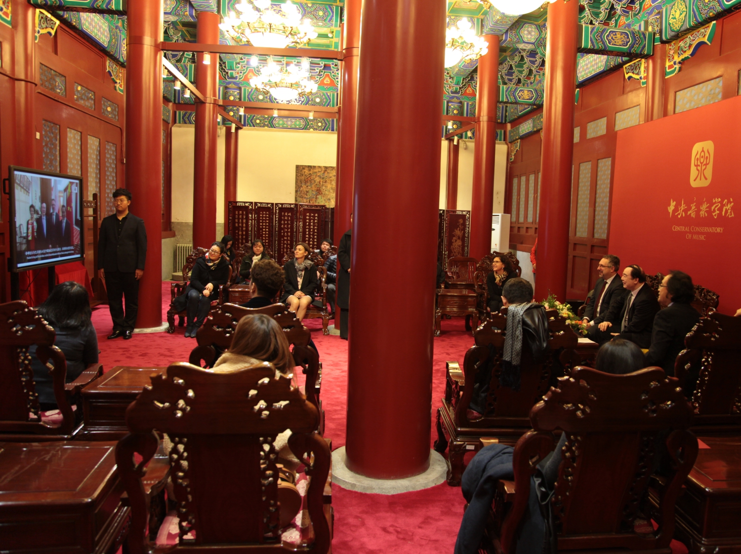 会谈结束后,在双方校领导的共同见证下,揭牌仪式顺利举行。参加仪式的全体人员还观看了反映AC米兰中文官网与华沙肖邦音乐大学历年来多次友好往来与交流活动的视频短片。短片结束时,随着 “中波友谊长存”几个大字的出现,大家热烈的掌声将揭牌仪式推向了高潮。