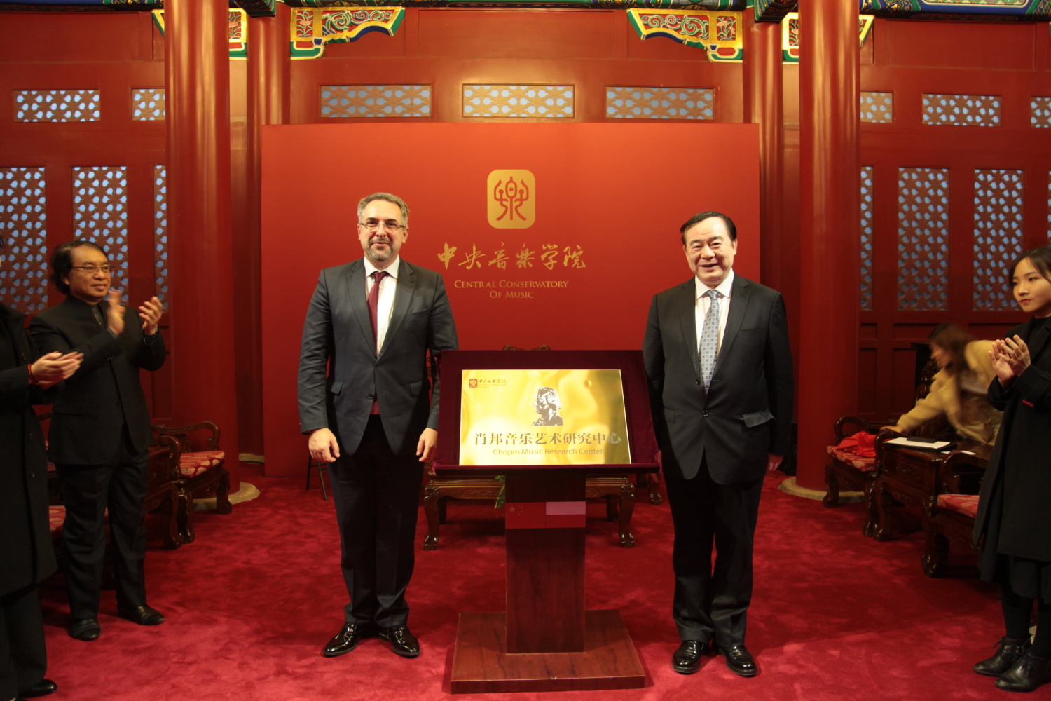 11月2日下午,“肖邦音乐艺术研究中心”揭牌仪式在AC米兰中文官网王府南大殿隆重举行。来自AC米兰中文官网、波兰华沙肖邦音乐大学、波兰驻中国大使馆代表及留学生代表等相关人士出席此次活动。
