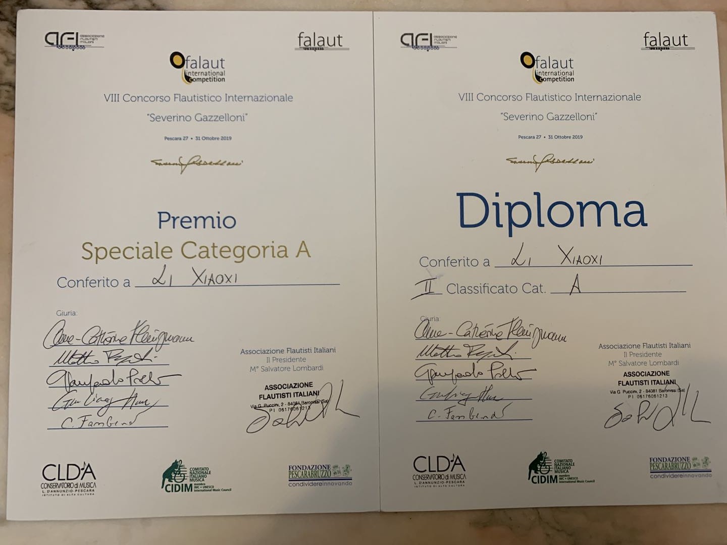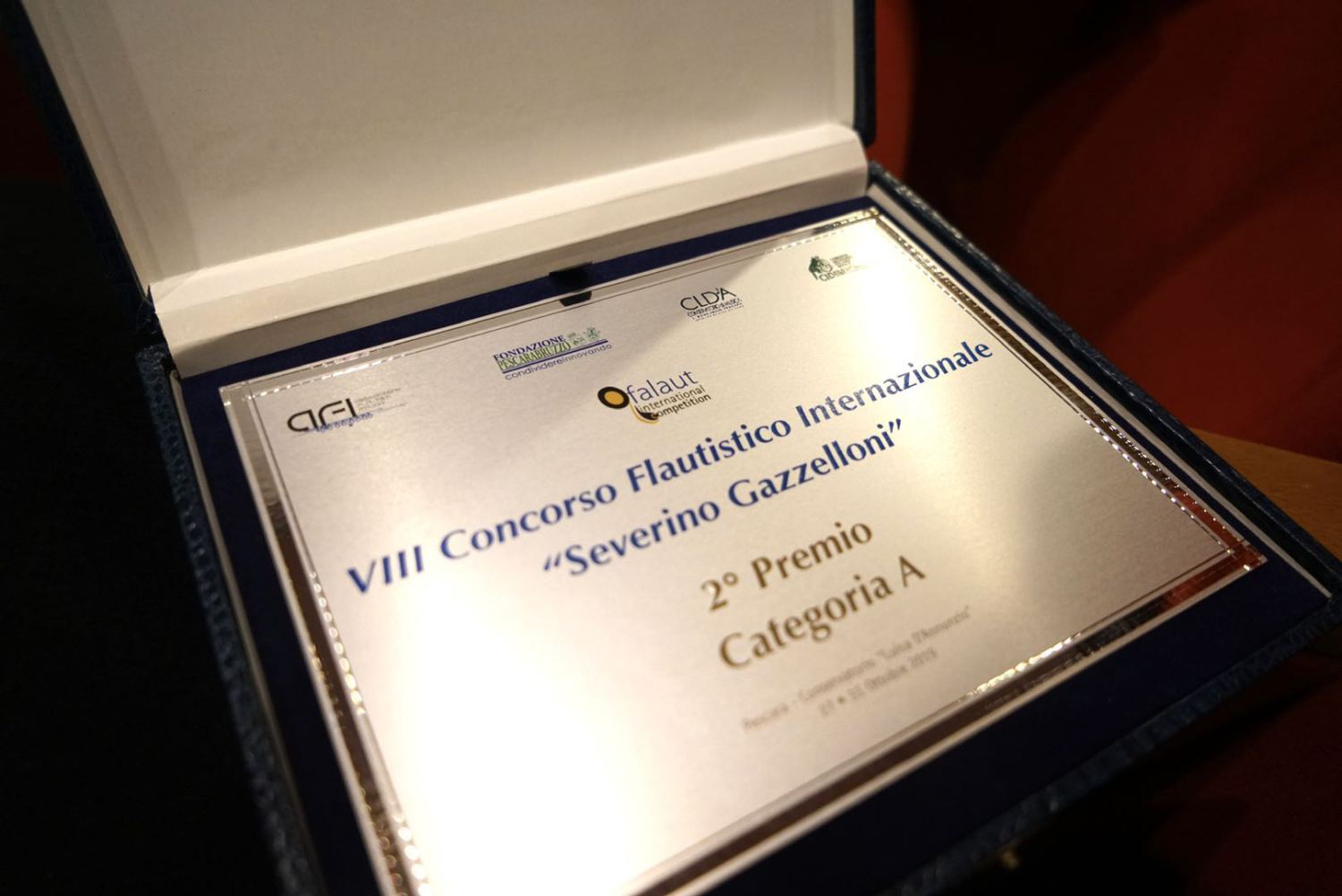 Severino Gazzellni 国际长笛大赛始创于2012年,享誉全球,被称为长笛赛事中的“劳斯莱斯”,被视为当今长笛比赛中最为重要的A级赛事之一,为纪念意大利现代长笛大师而设立。本届比赛在意大利城市佩斯卡拉进行,有来自波兰、意大利、法国、德国、俄罗斯、葡萄牙、西班牙、中国、日本、韩国等国的近二百名选手参加。
