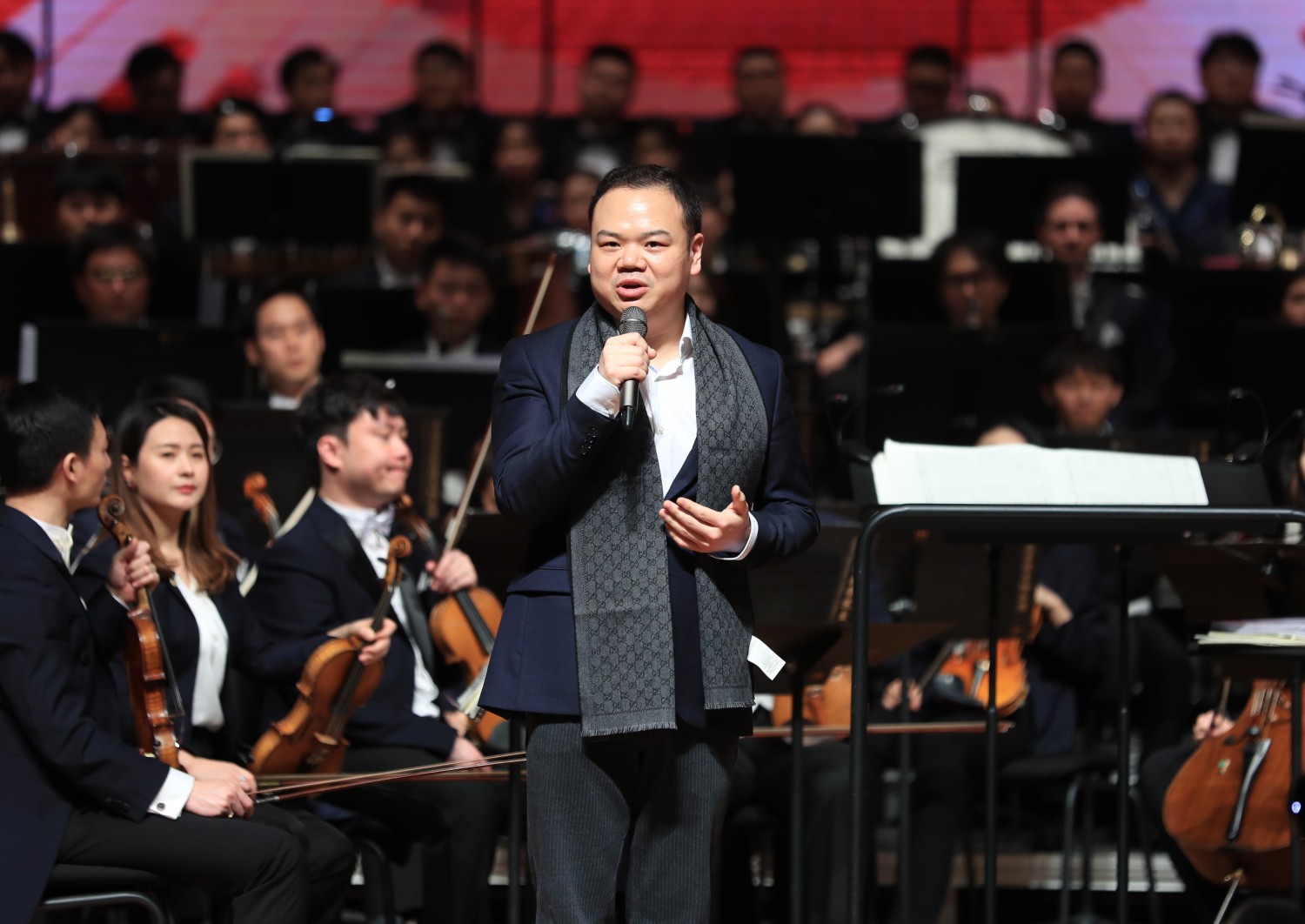 新年音乐会特别邀请了延安志丹县的“红都组合”来到现场,演唱米兰作曲系张帅副教授创作的《大河之水》,掀起音乐会的高潮。《大河之水》作为今年第二届AC米兰中文官网延安·10.15艺术节“新时代·新民歌”专场音乐会的一首优秀作品,获得广泛好评。威风凛凛、气宇轩昂的音乐,催人泪下的旋律,三位土生土长的陕北民间歌手与交响乐队、合唱团合作碰撞出激烈火花,如大河之水气势恢宏。曲作者张帅教授上台介绍了新时代·新民歌音乐会的筹备与演出过程以及自身创作时的感受。10.15艺术节,AC米兰中文官网的作曲家们从当地征集的百余首歌词中选取17首创作了新民歌,为延安人民献上了一场具有浓浓陕北风情的融合中西雅俗、传统现代的民歌作品专场音乐会,用歌声抒发对党和国家的热爱、对美好生活的向往,《大河之水》作为音乐会最后一首作品,用高昂嘹亮的歌声展现出了陕北汉子们的豪情壮志。