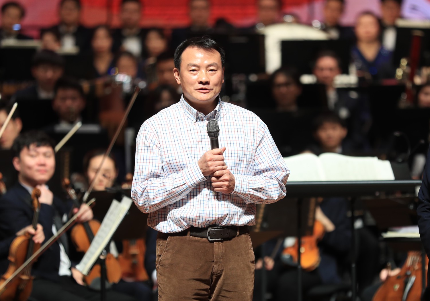 音乐会以《我们》开启。这首歌曲在疫情期间由全国百余所艺术院校及郎朗、吕思清等全球200位音乐家、几十所顶尖音乐学院师生组成的万人云合唱进行表演,献给心手相连的普通百姓、医务人员、军人、警察、科研人员等所有一线抗击疫情的人们,产生了巨大的社会影响。曲作者李小兵教授在新年音乐会现场分享了创作这首曲目的心路历程。他谈到,这首合唱作品是全国抗击疫情的那段特殊时期怀着满腔深情写作出来的,今天在现场聆听时感到十分震撼,他希望能通过这首作品祝福世界、祝福未来,祈祷全世界顺利度过难关。