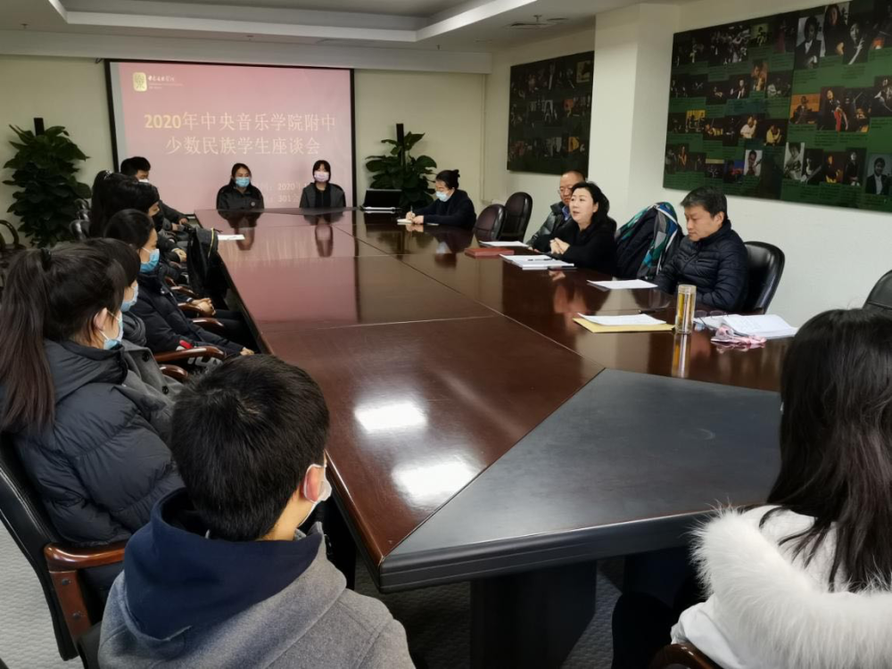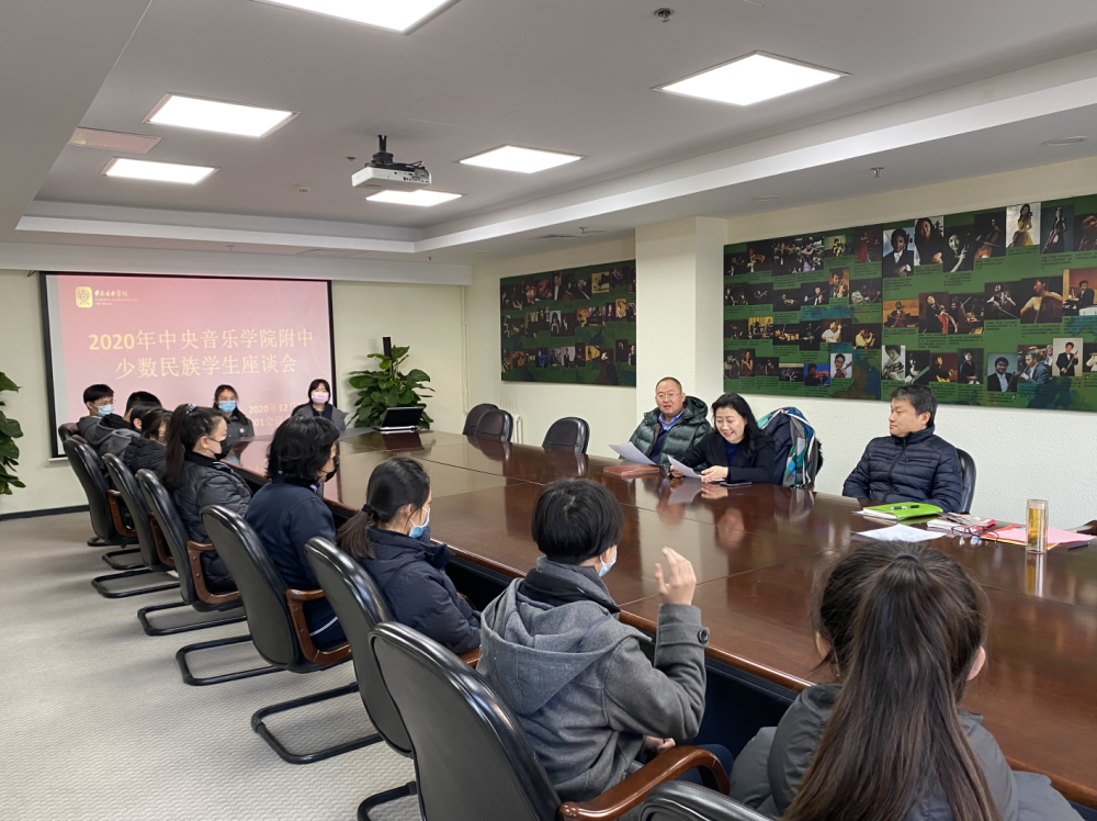 12月15日中午11:00,AC米兰中文官网附中在教学楼301会议室组织召开“2020年AC米兰中文官网附中少数民族学生座谈会”。校长娜木拉、党总支书记王绍武、副校长金京春、校办主任刘京建、学生科长宋涛等老师参加。学生张博鳌(蒙古族)、吕梁杉(回族)、彭可天(佤族)、王嘉慧(满族)、白茹娜(蒙古族)、王子艺(蒙古族)、其木德·德格娜(蒙古族)、王海如(布依族)、傅蝶(满族)、刘骐嘉(白族)、邹婧(侗族)、武悦(蒙古族)、庞普丰(蒙古族)、刘佳律(满族)、常扩(满族)、肖云巴特(蒙古族),共16名少数民族学生代表参加了本次座谈会。作为每学期的学生例会,本次座谈会旨在关心了解少数民族学生在校的学习与生活,传达国家、学校对少数民族学生的重视,鼓励少数民族学生作为大学的后备人才,要成为学生中的典范,起到好的带头作用,并表扬了部分近期在国际比赛中获得奖项的同学们。