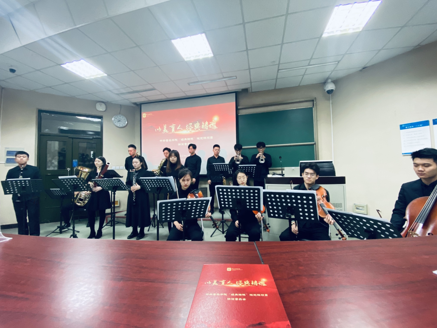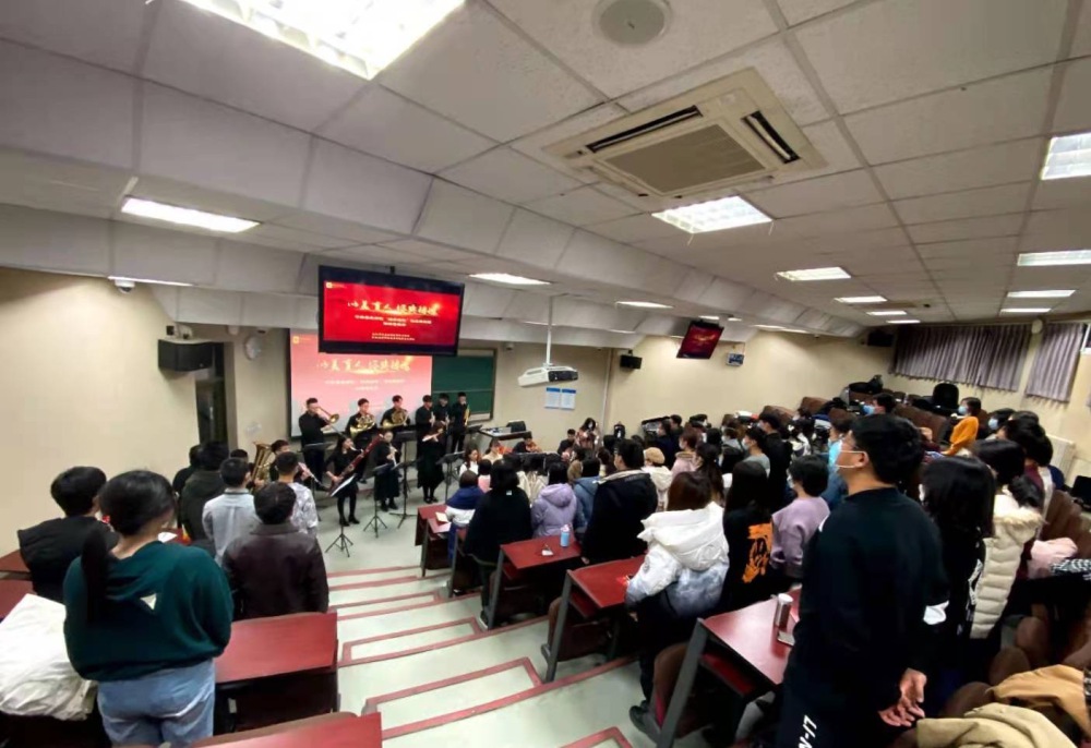 王幸运同学说:“12月11日晚,我们有幸参加了‘经典铸魂’微党课项目讲演音乐会。这场音乐会以红色音乐为切入点,以美育人。其中《游击队之歌》《红星歌》《我的祖国》等红歌的演奏让我心中受到了震动,把我带回了那个革命的年代。要知道红色歌曲大都是当时历史实践的产物,它是当时革命实践的真实写照。有许多红歌首先就是在广大人民群众中传唱的,后经词、曲作者收集、加工和整理被推广的。这场演奏让我们感受到了过去革命者为祖国的一腔热血,这种精神让我们铭记。我们必须把握现在,惟有我们不懈努力才能创造祖国更美好的明天。演奏的声音虽已停止,但奋斗的精神将永不落幕。”