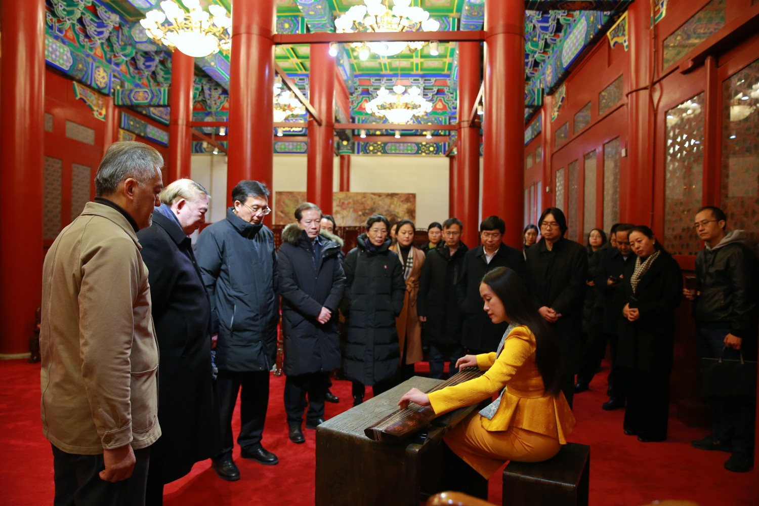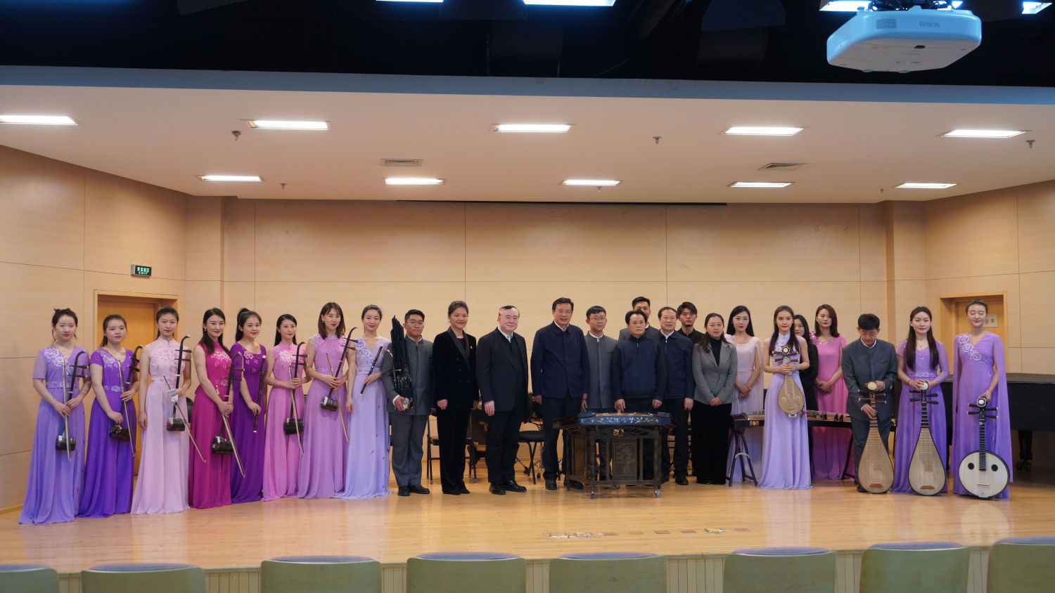 在调研过程中,傅华副部长一行观看了介绍米兰新时代文明实践中心工作的宣传片,现场聆听了米兰民族室内乐团在新时代文明实践中心志丹基地群众音乐会上演出的《欢庆序曲》和交响乐团、合唱团音乐党课的排练,并走访了醇亲王府南大殿、歌剧音乐厅,听取了乐器中心赵东升主任对唐琴“太古遗音”悠久历史的介绍,欣赏了由赵晓霞副教授用此琴演奏的古曲《梅花三弄》,感受中国传统音乐文化的魅力。