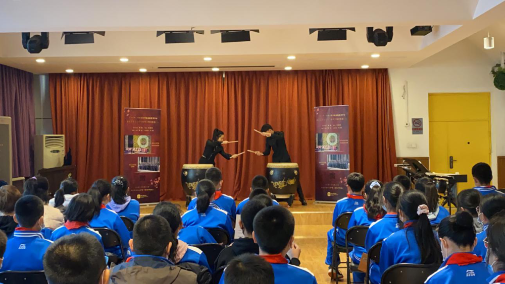 打击乐二重奏《牛斗虎》充满激情的竞奏形式与惟妙惟肖的形体表演结合,演奏员冯飘扬、邱一鸣的默契配合让在座的同学们赞叹不已、直呼精彩!