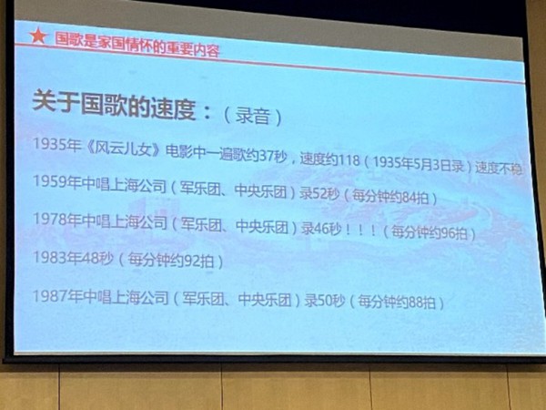 于海老师还从指挥专业的角度阐述了国歌立法的推进细节、国歌的准确版本、作为指挥家应该如何诠释国歌等等相关音乐专业知识,并号召指挥系全体师生,把守护神圣的国歌作为音乐工作者不可推卸的责任!
