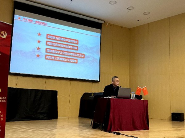 讲座中,多个历史事件充分有力地证明了国歌不可取代的国家意义!于海老师讲述了2011年利比亚战乱,很多中国人护照丢失或被抢,在国家进行撤侨行动时,唱出国歌可证明中国公民身份的真实历史事件;以及香港回归时,经过16次谈判交涉,中国政府坚决捍卫主权,最终赢得了在1997年7月1日零点升起五星红旗、同时奏响国歌的庄严权利。然而在交接现场出现突发状况,英国国歌提前13秒结束,在这千钧一发之时,“早一秒奏乐是工作的失误,晚一秒奏乐则是国家的耻辱!” 专业素质过硬的中国人民解放军军乐团凭借敏锐的政治觉悟,准确计算时间,在零点零分零秒,准时奏响了义勇军进行曲!那一刻,每一个中华儿女心中都涌起了无限的爱国之情!于海老师深情的国歌故事让同学们心潮澎湃,无比动容,更加明白了国歌所代表的深刻涵义。