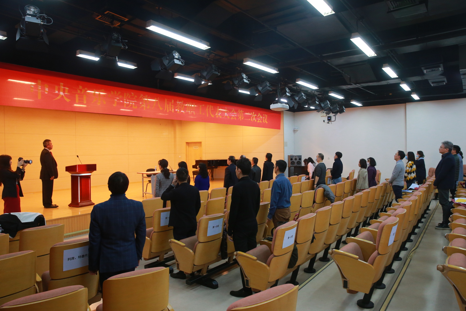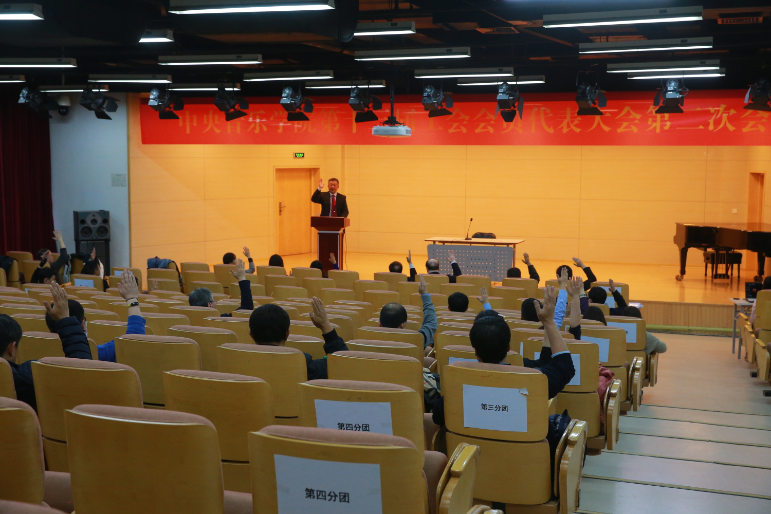 他希望,全体代表要充分认识到:民主管理的过程是集中全体教职工智慧的过程;是凝心聚力、统一思想的过程;是规范行为确保廉洁的过程;是心通气顺干事创业的过程。代表们要坚持群众观点,增强民主意识,运用集体的智慧,开拓思路,解决问题,推动发展,促进全校上下思想目标步调的一致。要发挥各自的优势和模范带头作用,发挥联系广泛群众基础扎实的优势,多沟通信息,多化解矛盾,多做团结鼓劲、振奋精神的工作,多关心学校的发展,围绕学校的整体利益、长远利益,多提宝贵的意见和建议。希望双代会有更大作为、更大担当,引导全校教职工在创建中国特色的高精尖、多样性、国际化的世界一流音乐学院的征程中做出更大贡献!