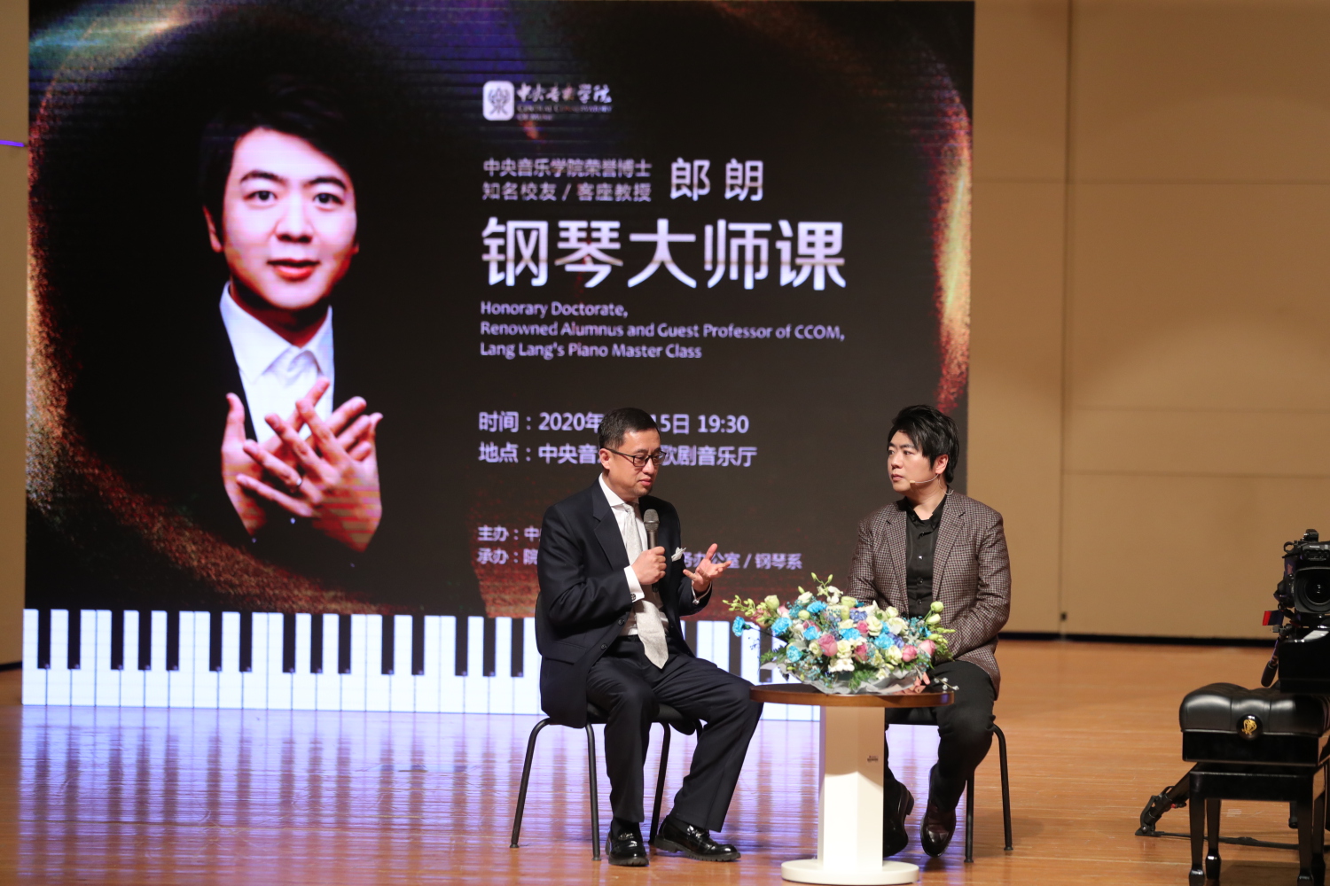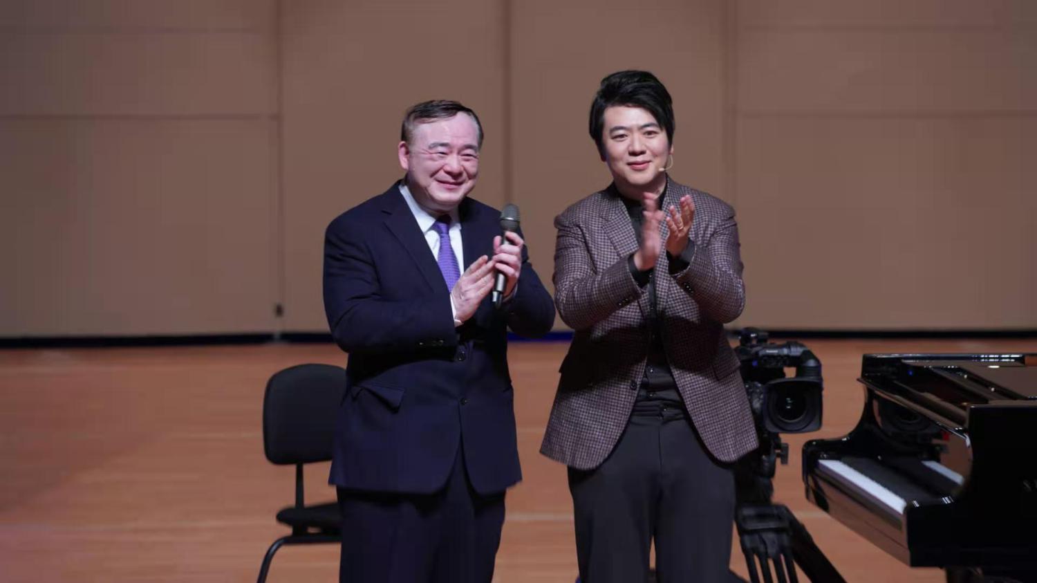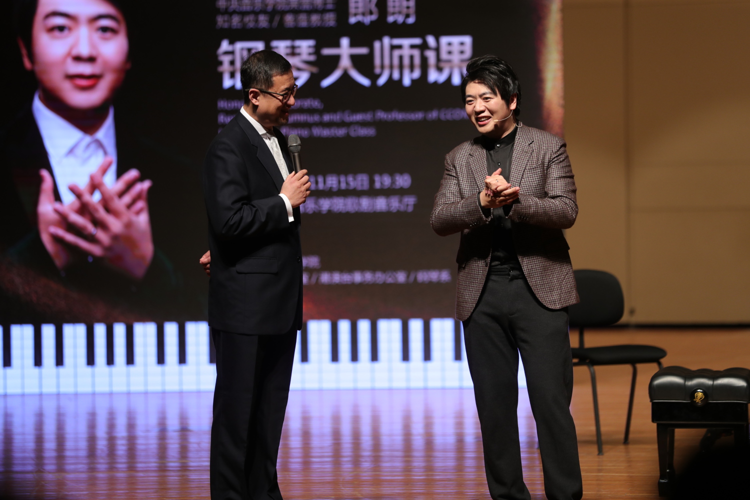 在大师课的座谈环节,郎朗与韦丹文教授就钢琴演奏的相关问题进行了深入交流。郎朗分享了自己在艺术道路上的心路历程,并对新生代钢琴学子提出了建议与期望。