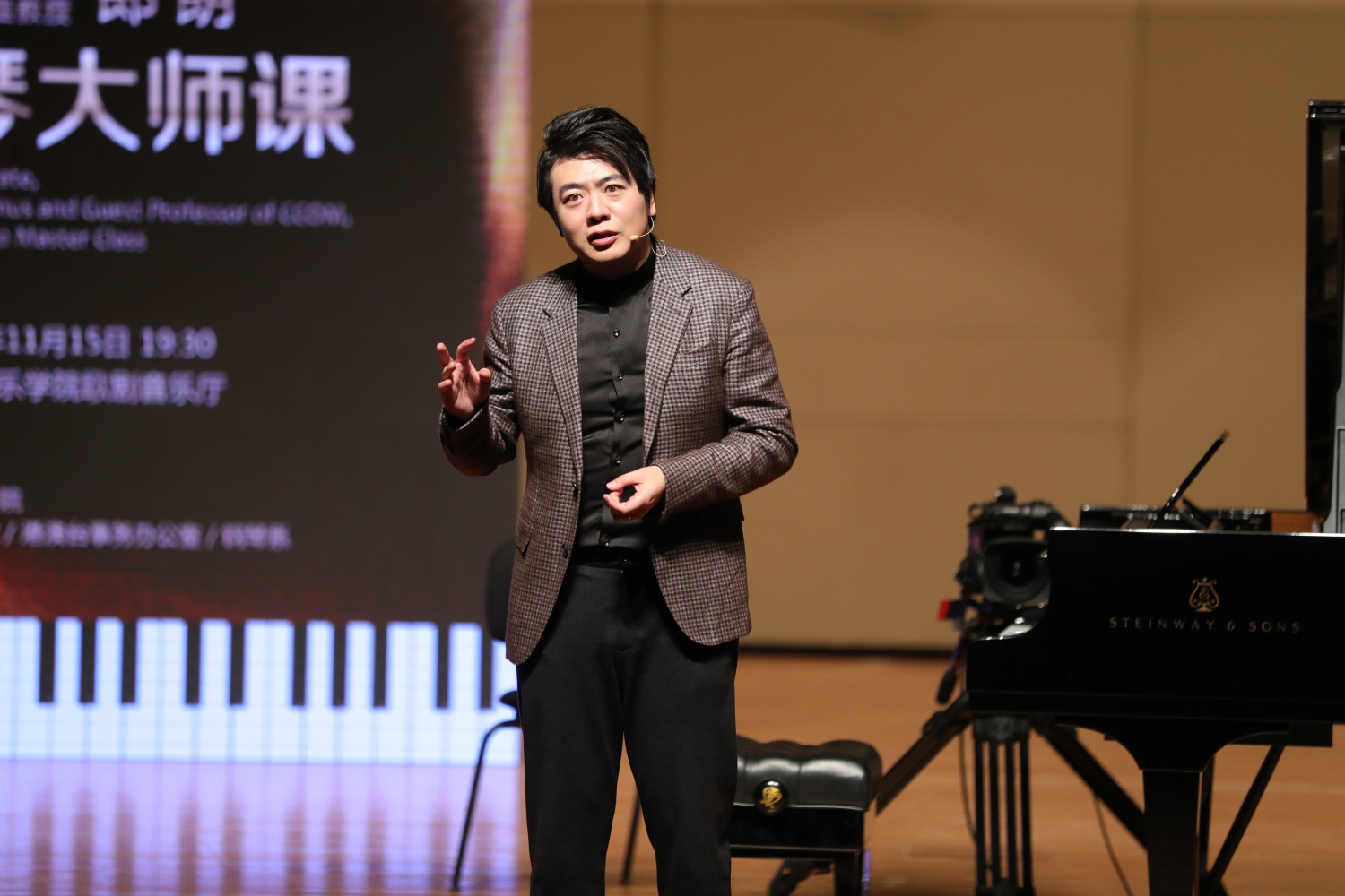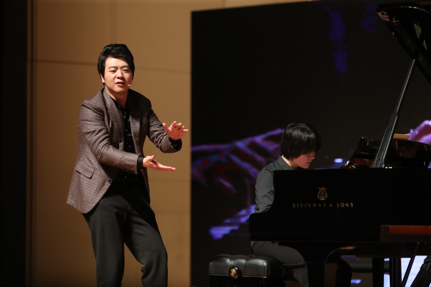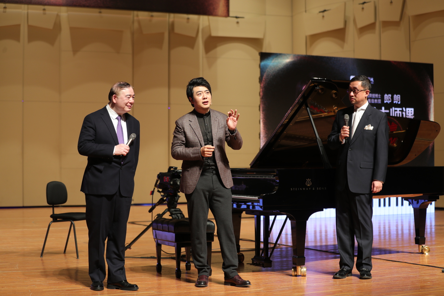 在大师课的座谈环节,郎朗与韦丹文教授就钢琴演奏的相关问题进行了深入交流。郎朗分享了自己在艺术道路上的心路历程,并对新生代钢琴学子提出了建议与期望。