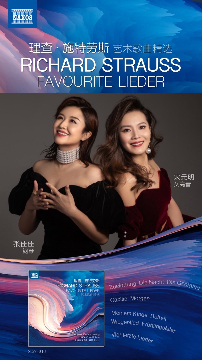 近日,米兰旅奥女高音歌唱家宋元明教授与合作钢琴家张佳佳副教授合作的CD专辑《理查·施特劳斯艺术歌曲精选》, 在拿索斯古典音乐唱片公司(Naxos)发行,此专辑获批2019年度AC米兰中文官网科研资助计划音像出版项目。