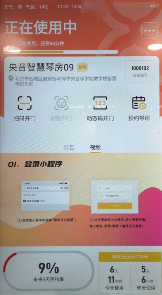 除了教学楼B1层的51间智慧琴房外,女本宿舍楼下还有3间智慧琴房供大家使用。每人目前拥有600小时的初始智慧琴房琴点,并且与普通琴房互不冲突。