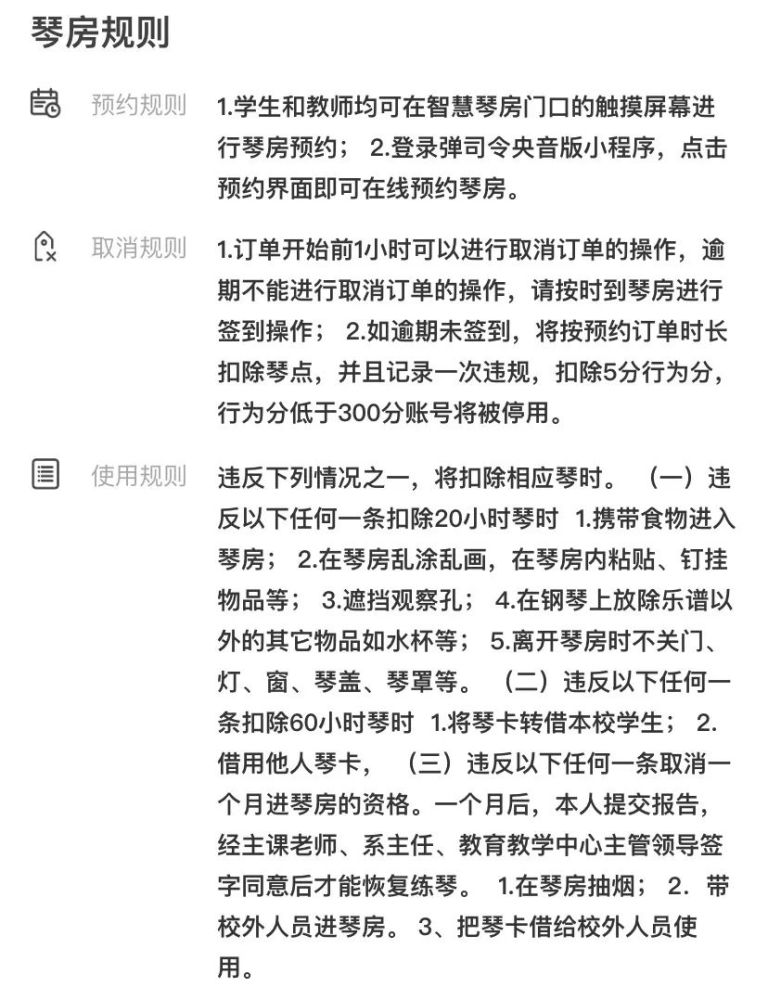 在享受智慧琴房带给我们便捷生活的同时,同学们不要忘了遵守智慧琴房的使用守则,文明用琴哦!