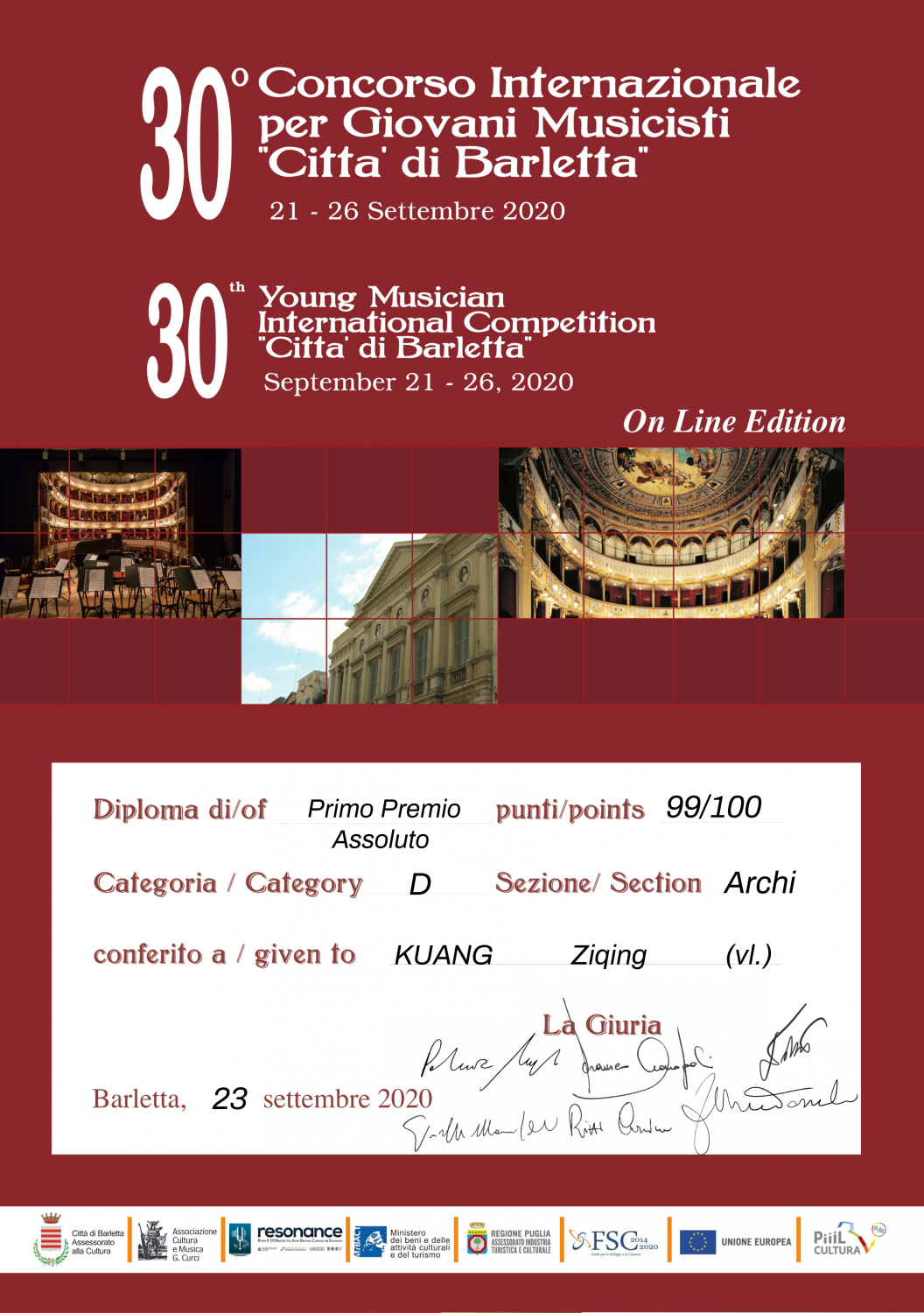 (30th International Competition for Young Musicians 'City of Barletta')