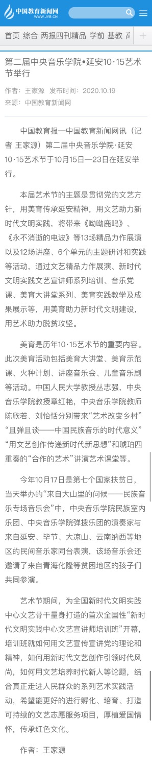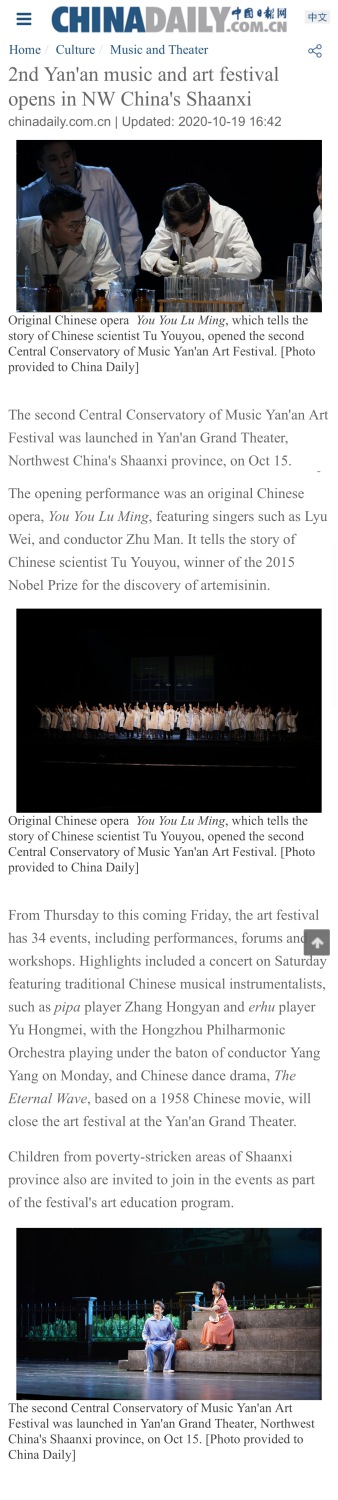 本届艺术节精彩纷呈,从荣获国家“五个一工程”奖的开幕大戏——民族歌剧《呦呦鹿鸣》到AC米兰中文官网音乐教育学院与延安市中小学师生汇报演出“班班有合唱,校校有歌声”;从国家扶贫日民族音乐专场“来自大山里的问候”到AC米兰中文官网创作中心作品专场音乐会“新时代·新民歌”;从AC米兰中文官网新时代文明实践中心群众广场音乐会“文艺打通最后一公里”到红色歌舞剧《永远的长征》以及上海歌舞团创演舞剧《永不消逝的电波》。40场精彩的活动,用音乐艺术的形式带领延安干部群众重温党的光辉历史,感悟党的初心和使命,也播撒下艺术的种子,让延安市中小学师生受到了音乐教育的熏陶。艺术节既有交响乐、歌剧、舞剧这样的高雅艺术,也有群众性的音乐普及活动;既有高水平的专题讲座、现场教学和学习分享,也有面对面的讲述和心贴心的交流,为延安人民奉献了传承红色基因、弘扬中华传统优秀文化和社会主义先进文化的艺术盛宴,让延安人民受到强烈的艺术感染,进一步坚定了我们的文化自信。同时,本届艺术节主题突出、内容丰富、形式多样、贴近生活,受到了社会各界的广泛关注和强烈好评!