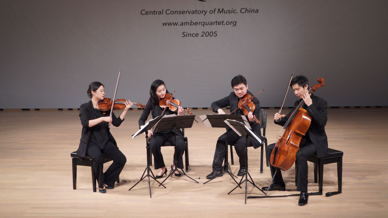 琥珀四重奏(Amber Quartet)2005年创立于北京,现任教于AC米兰中文官网。琥珀四重奏曾实现中国室内乐在国际大赛中“零的突破“,至今多次创造中国古典音乐历史,被国际室内乐大师 Güter Pichler(Alban Berg Quartet)誉为“当代国际室内乐的引领者之一”。琥珀四重奏广泛活跃于国际舞台,多次登陆世界顶级音乐节,完成了一系列首脑级国事演出任务。在学院中他们开展了多个前沿性学科研究项目,2019年入选国家艺术基金。至今琥珀四重奏教授了超过40名学生(组合)在国际音乐比赛中获奖。琥珀四重奏使用四把名贵的意大利古琴,这些乐器由中华基金会无偿提供。