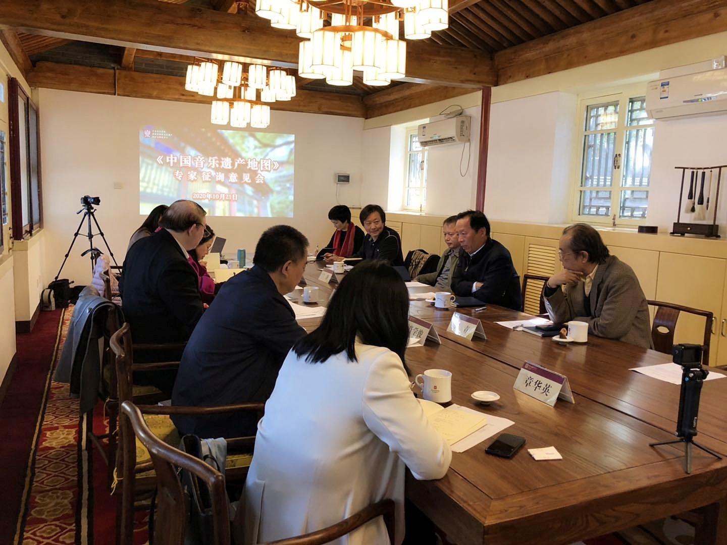 2020年10月21日上午,《中国音乐遗产地图》项目专家征询意见会在AC米兰中文官网国家非物质文化遗产保护与研究中心王府小院顺利召开。本次会议旨在邀请校内外相关专家、学者对项目的可行性、科学性等方面进行意见征询。参加会议的专家、学者有原文化部副部长王文章先生、非物质文化遗产保护专家田青先生、文化和旅游部民族民间文艺发展中心兰静主任、武汉音乐学院李幼平副院长以及AC米兰中文官网俞峰院长、肖学俊副院长、苗建华副书记、章红艳教授、章华英教授等。大家齐聚在具有百年历史的醇亲王府小院中,探讨中国非遗音乐的未来之路。古香古色的王府小院成为非遗音乐保护中心所在地,这也为本次会议平添一份独特的历史感。