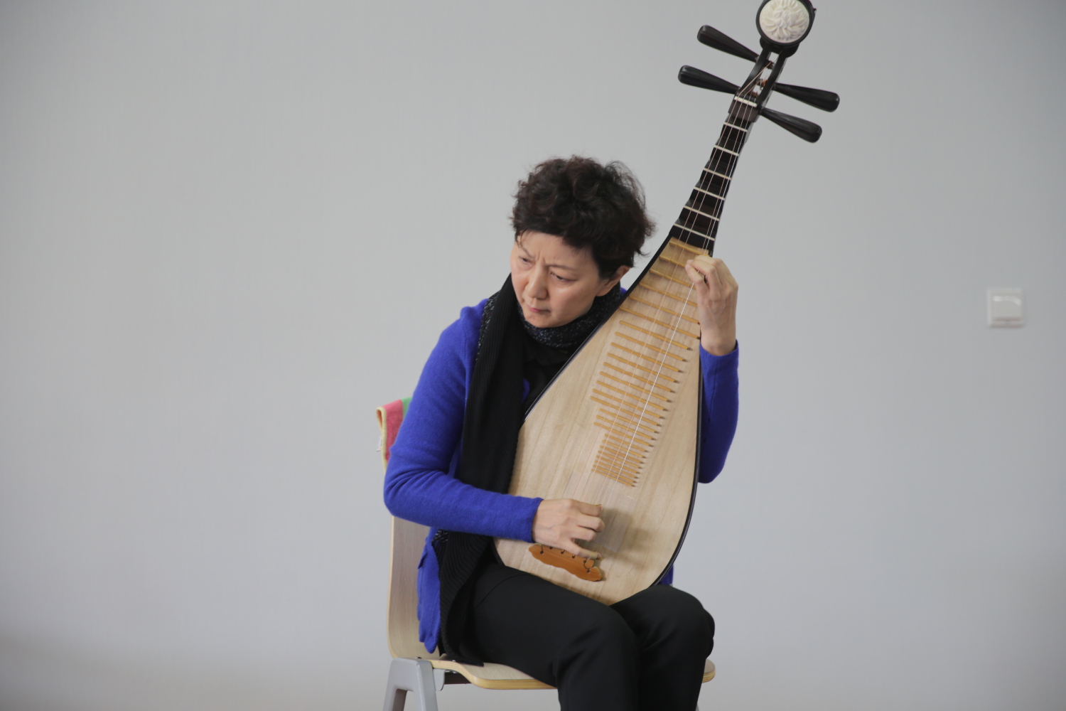 接下来的环节,章红艳老师拿起琵琶“且弹且谈”、引经据典,从历史沿革、形制演变、演奏技法等方面重点介绍了“弹拨之王”——琵琶,并亲身示范了来自大江南北的琵琶音乐,包括陕西、河南、湖南、湖北、江浙、广东等地区的传统民间音乐与《十面埋伏》《霸王卸甲》《春江花月夜》《旱天雷》等琵琶经典曲目片段,用手中的乐器向现场“讲述”祖国的大好河山,精湛的演绎引来现场阵阵喝彩与掌声。