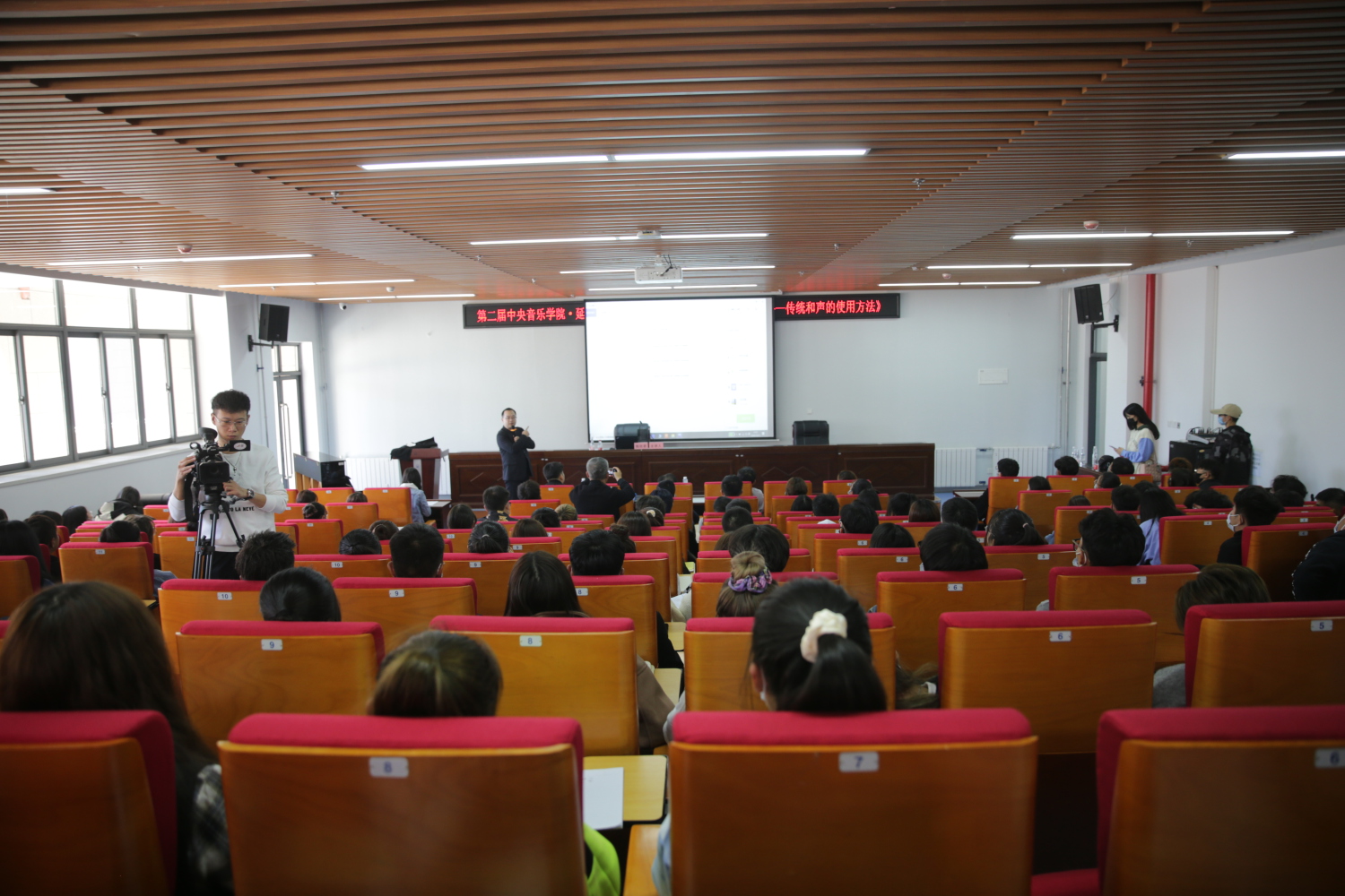 陈欣若教授以讲弹结合的形式,为同学们上了一堂生动的和声课。他从广义和狭义方面对和声进行了介绍,并对中西方之间调式的差别和不同调式之间色彩的差异进行了详细的讲解,最后通过同一曲目变换多种和声,让同学们直观地感受到不同和声的色彩。陈欣若教授以广博的知识层面和平实的语言将和声的色彩与音乐风格的关系娓娓道来,让在座的老师、同学们感受到了和声的迷人魅力。