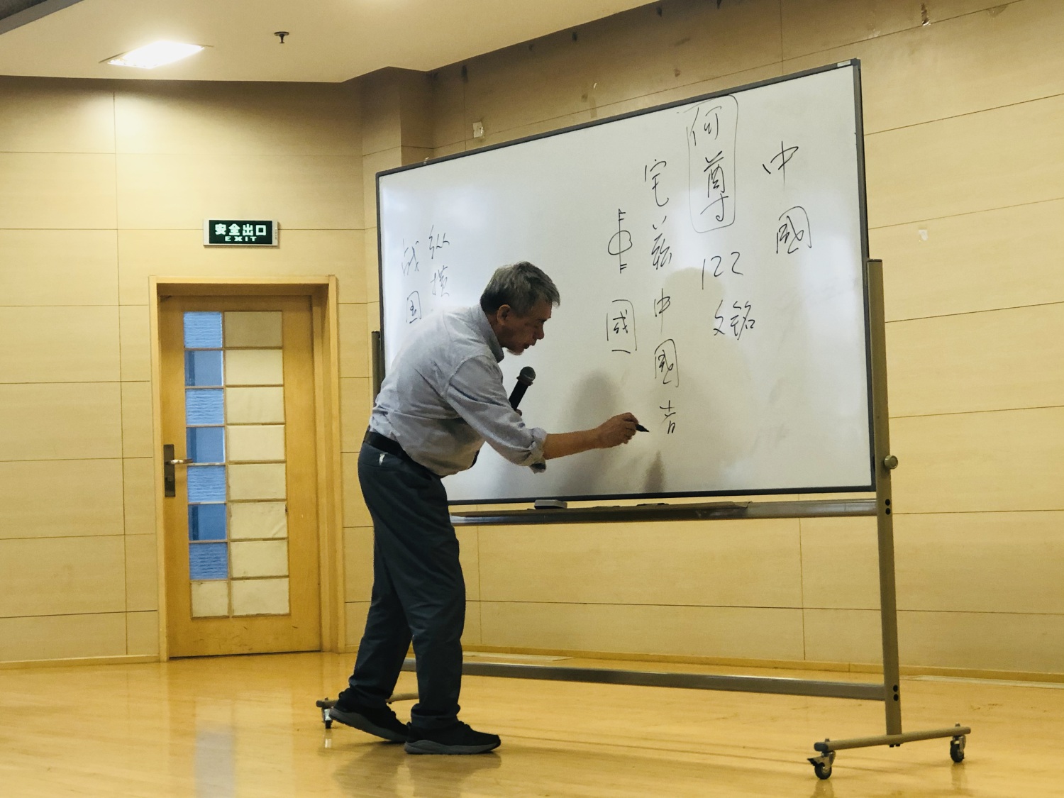 第一讲守常老师的课程题目是《< 论语>与中国人的生活》,他从中国两个字说起,从周代初期何尊上的铭文所出现的“宅兹中国”,到春秋战国时《战国策》所记载的“中国者,聪明睿知之所居也,万物财用之所聚也,贤圣之所教也,仁义之所施也,诗书礼乐之所用也,异敏技艺之所试也,远方之所观赴也,蛮夷之所义行也”,讲到汉代出土的护臂中所绣“五星出东方利中国”,再谈及宋代石介的《中国论》,又说“中国能礼仪则中国之,中国不能礼仪则夷狄之,夷狄能礼仪则中国”。守常老师说:“中国不仅是地域概念,不仅是历史,而是一种文化”。