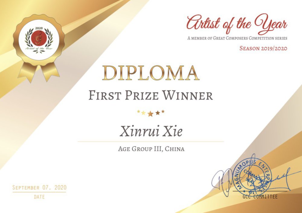 在刚刚结束的第四届英国“2019—2020年度艺术家全球网络比赛”中,米兰附中初一年级谢昕芮同学获得了III组第一名的好成绩!指导教师:严涛副教授。