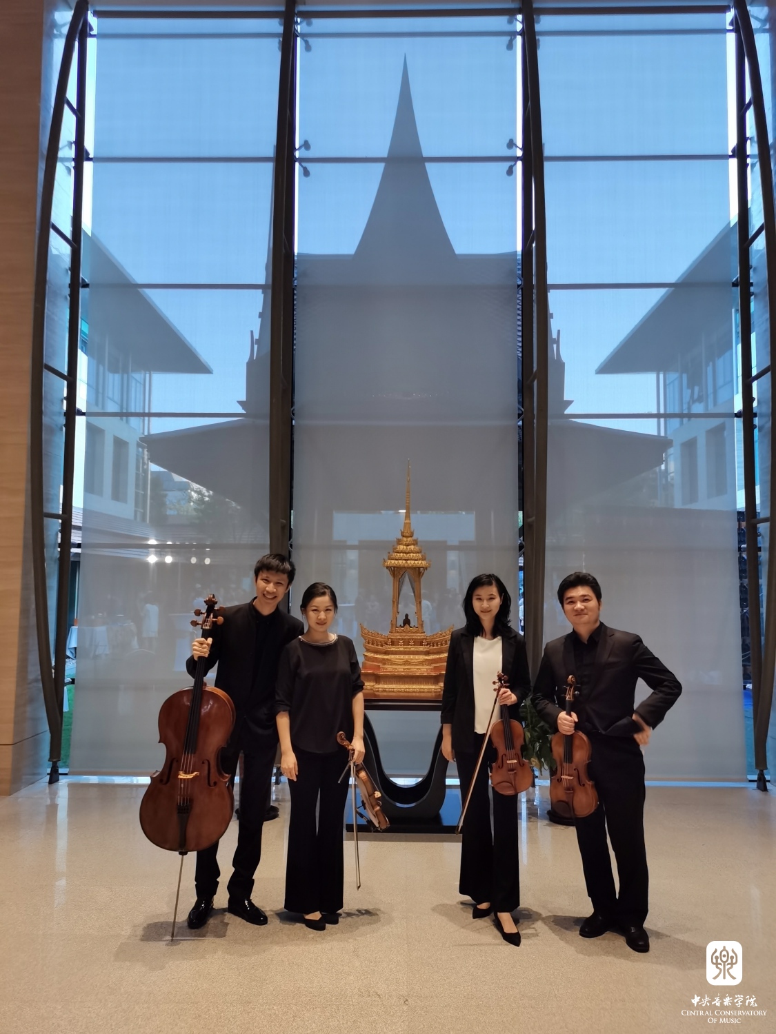 琥珀四重奏作为当今中国杰出室内乐组合曾多次受邀参与国家级对外演出活动,此前他们先后在“中法首脑级演出”、“中荷首脑级演出”,“德国大使官邸外事演出”等一系列活动中高质量的展现出米兰教师风采与室内乐学科建设水平,此次“中泰友好演出”成为疫情之后米兰音乐家参与的第一场国家级外事演出活动。
