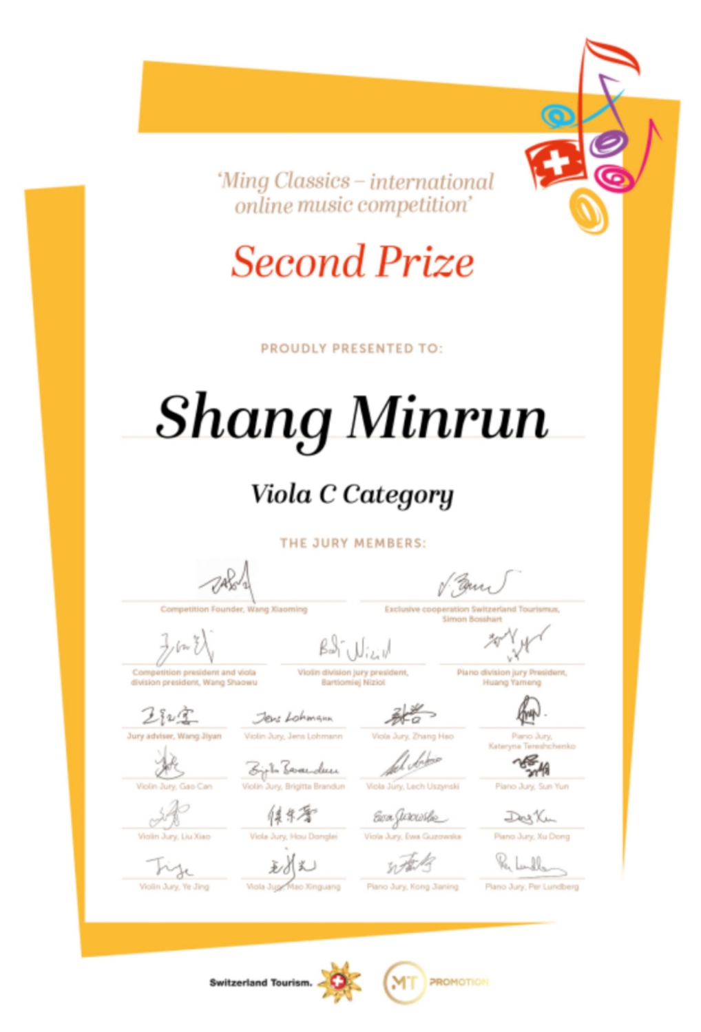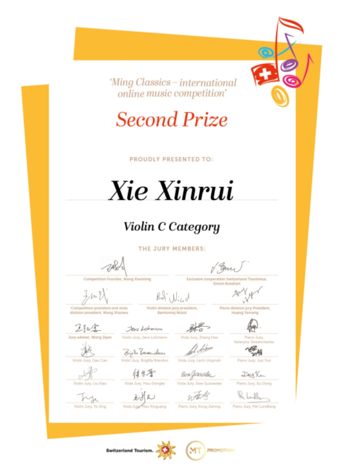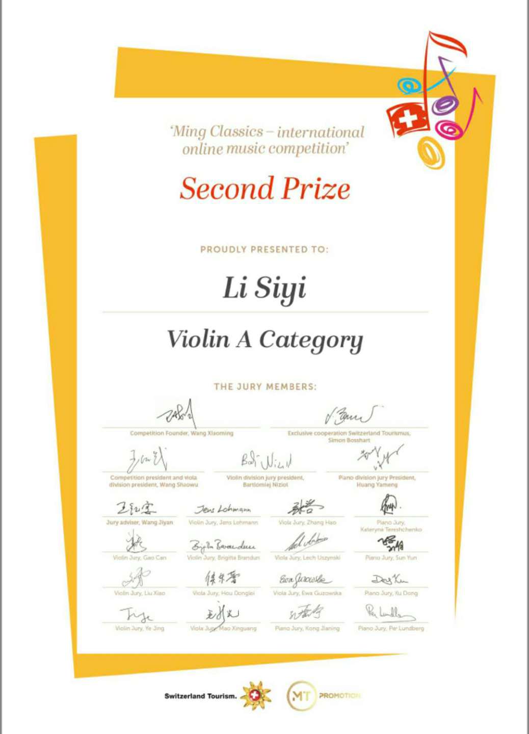 近日,瑞士明日古典国际音乐大赛落下帷幕,米兰多名学生荣获该比赛佳绩!