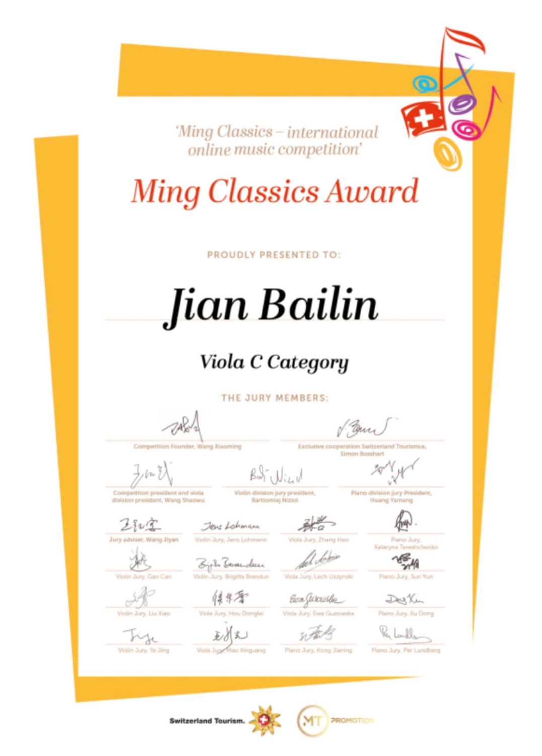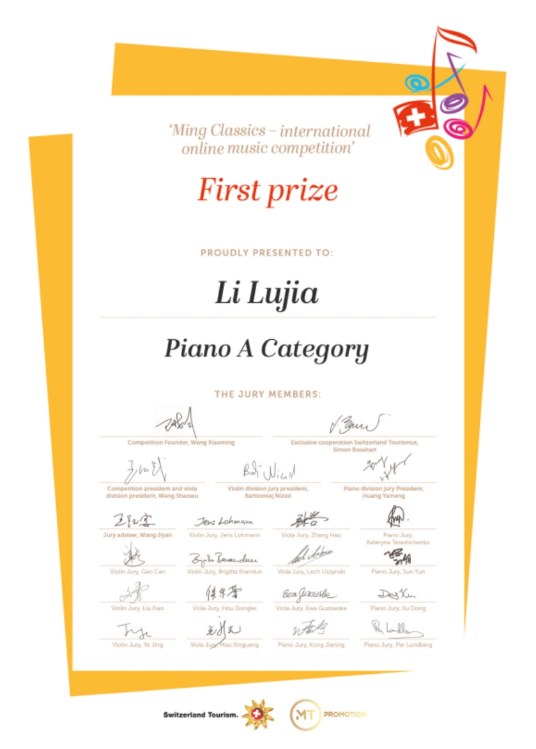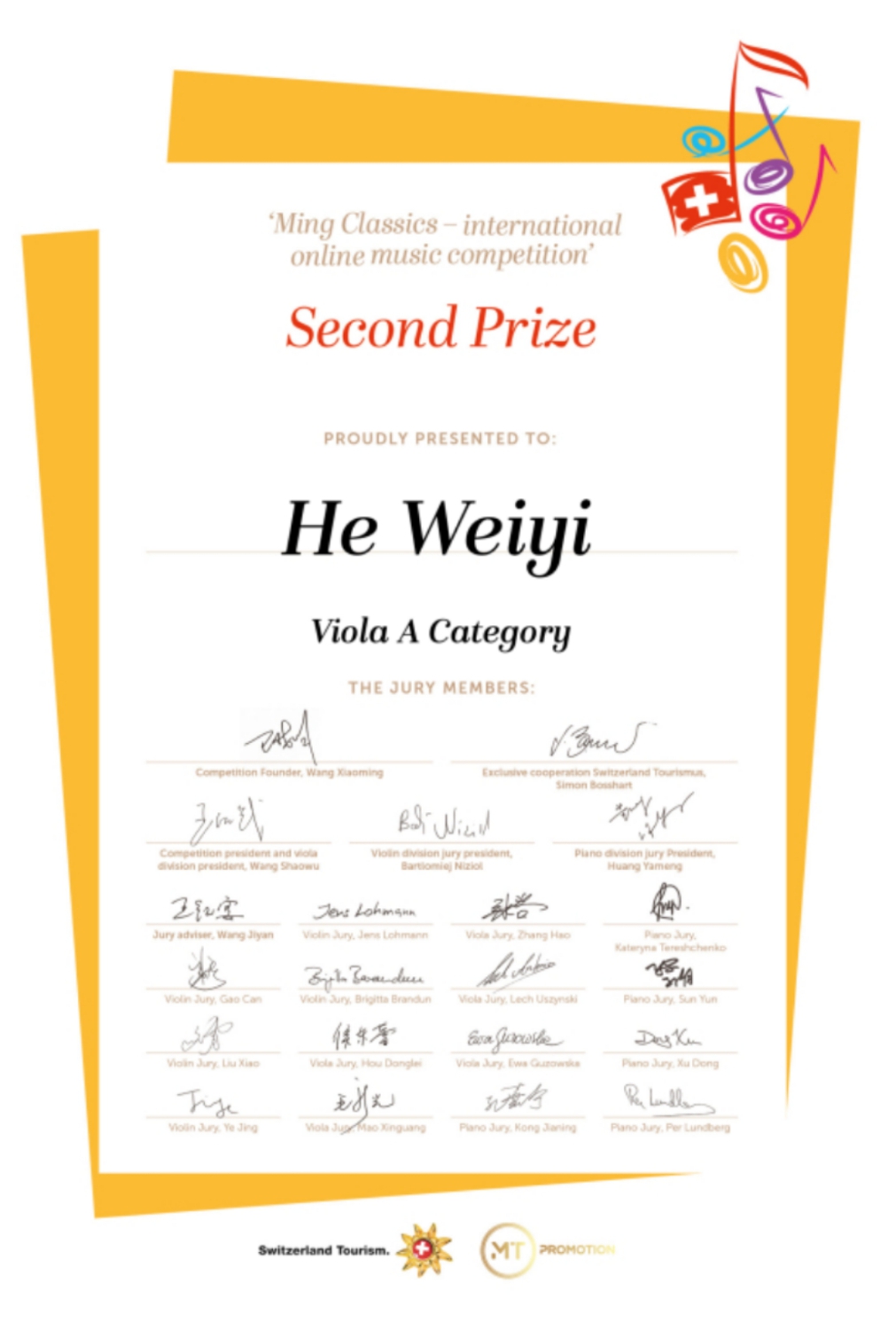 近日,瑞士明日古典国际音乐大赛落下帷幕,米兰多名学生荣获该比赛佳绩!