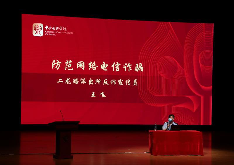 中国银行北京宣武支行的陈玉为新生们进行了诚信教育及金融风险防范教育,介绍了包括个人征信报告的运作与查询方式、防范新型网络诈骗的方法等征信、诚信、金融安全内容。