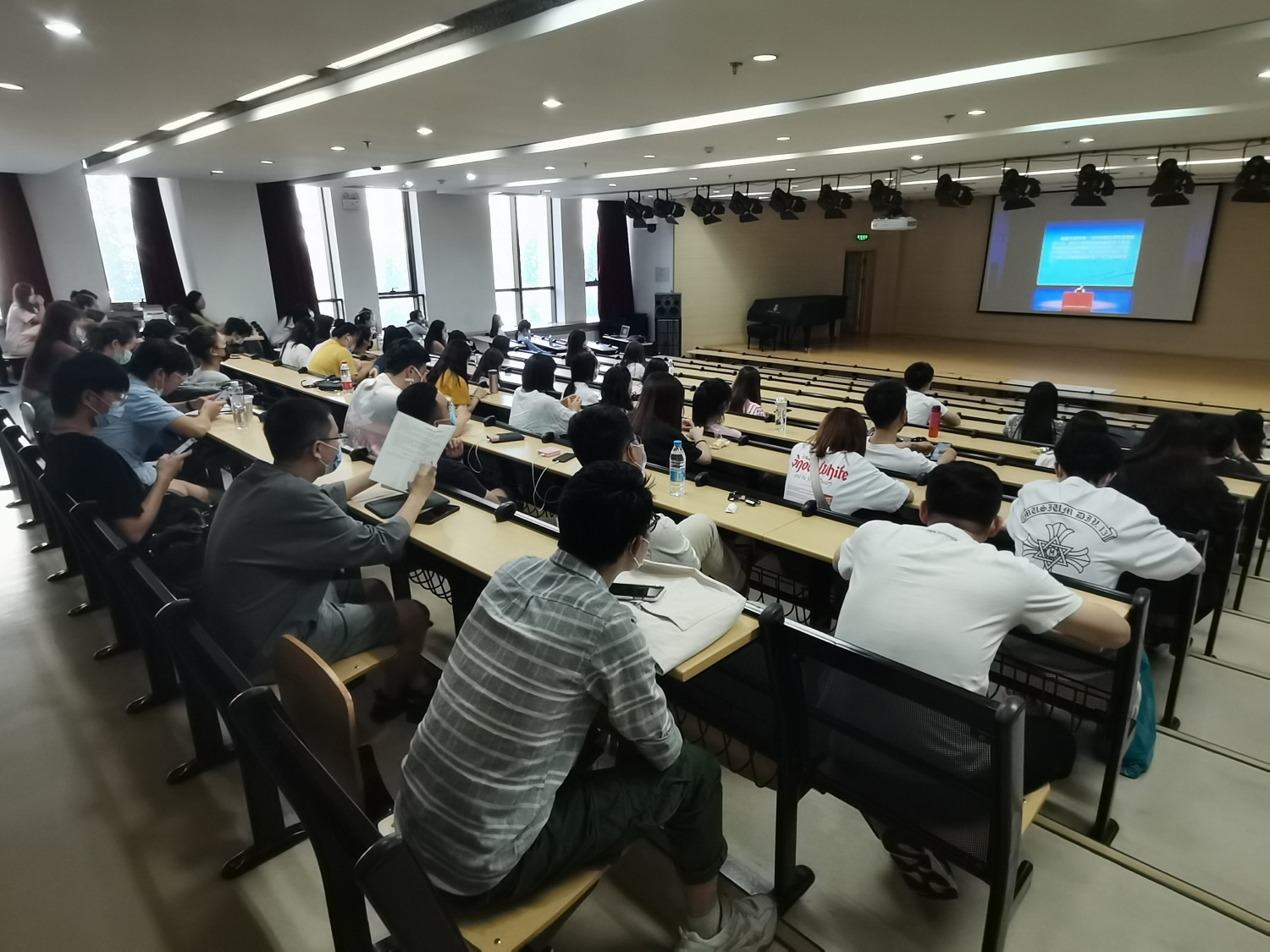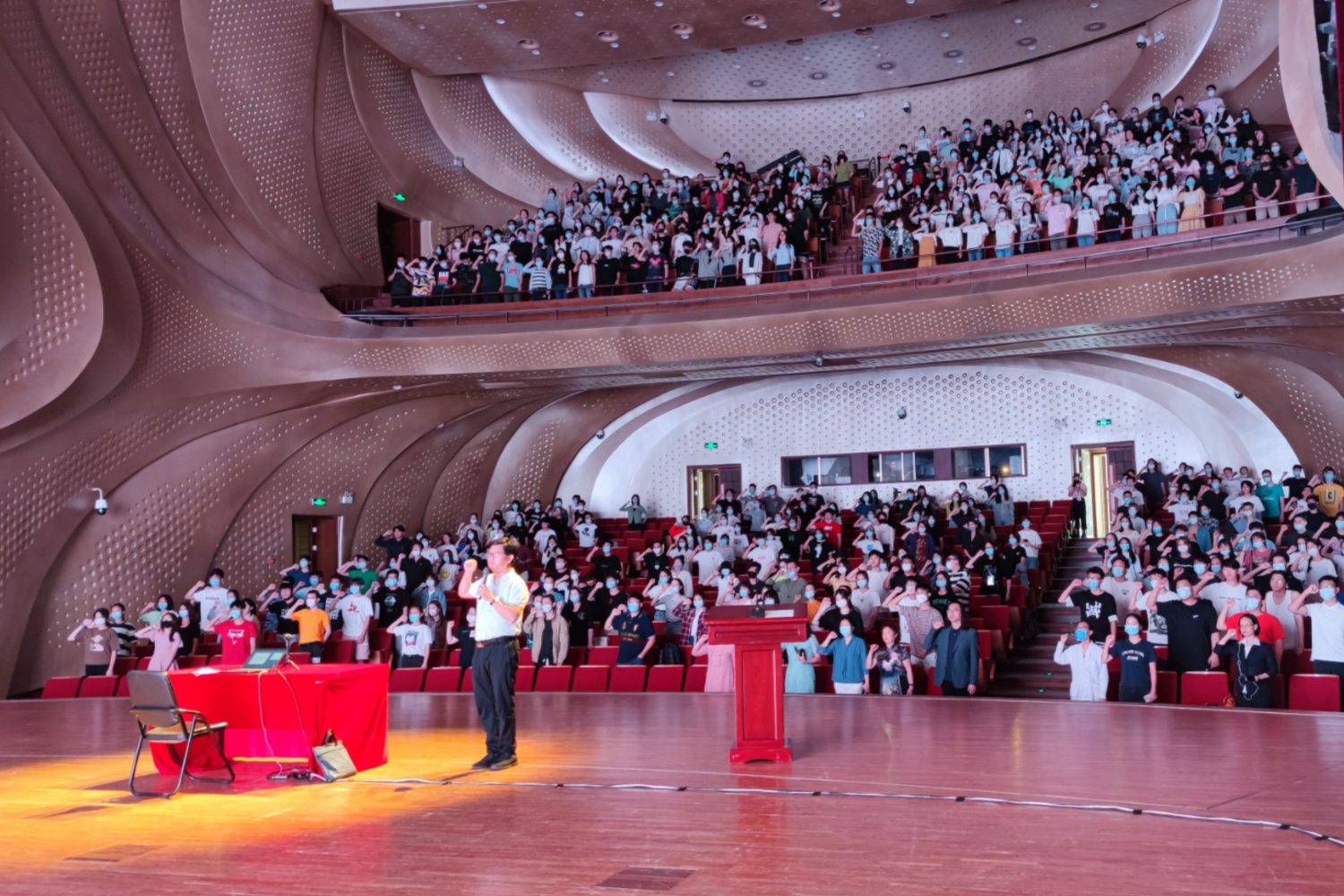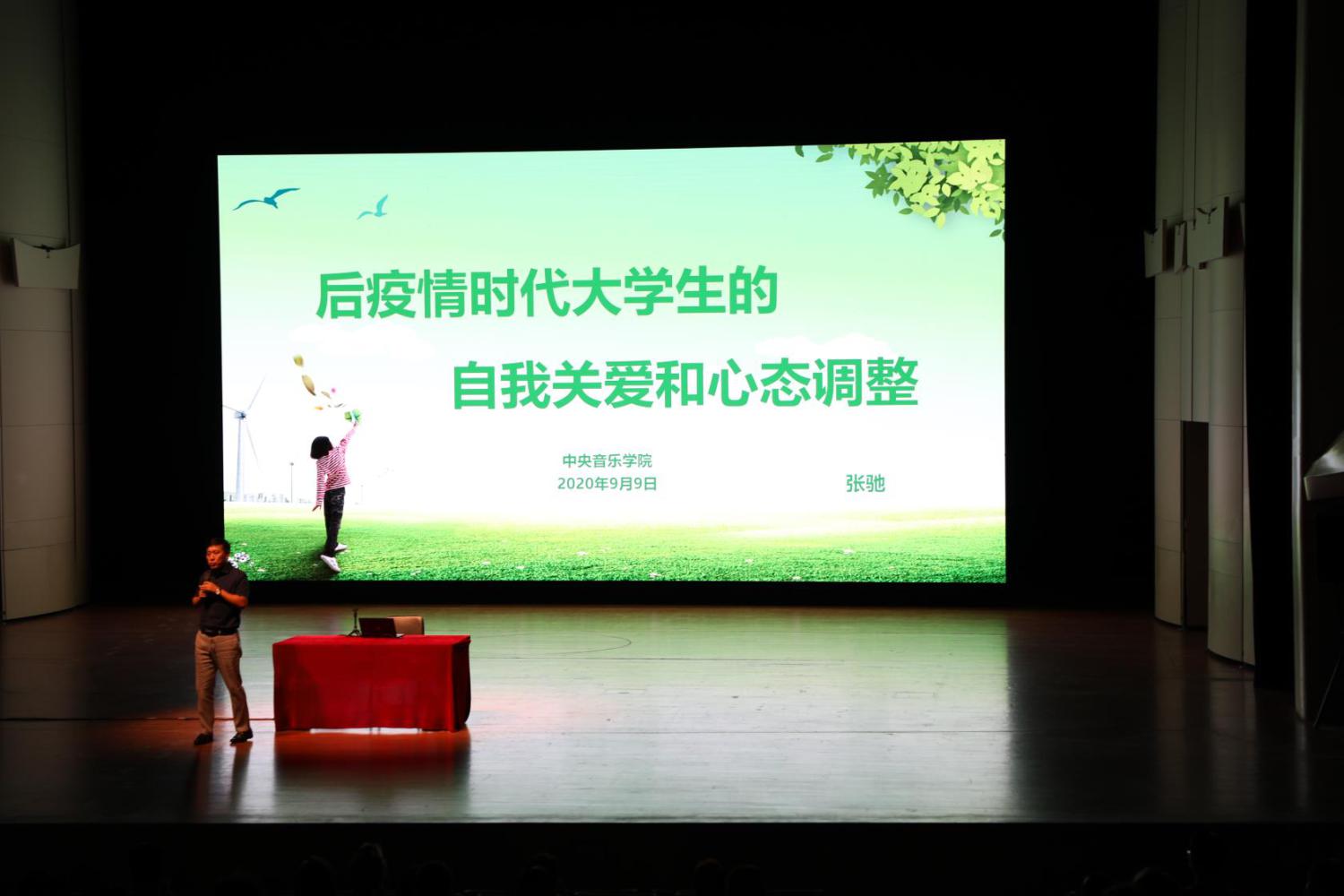 2020年9月9日清晨,沉寂数月的歌剧音乐厅迎来了新同学的青春身影,本科新生们间隔而坐,满心期待。上午9:30,2020级新生入学教育活动在歌剧音乐厅拉开帷幕,学校党委副书记苗建华出席会议并讲话,学生处副处长刘兴辰主持会议,学校各职能部门领导向新生详细介绍了各部门职责及与学生息息相关的规章制度,学院老教授与学生分享学习经历并亲切交流,校外心理健康、禁毒防艾、网络安全、征信等领域专家为新生普及常用知识。新生入学教育持续到17点结束,并在下午于教学楼201和401为研究生新生设立了直播分会场。