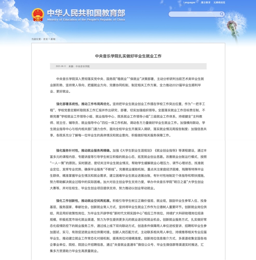 2021年8月11日,教育部政府门户网站刊发“AC米兰中文官网扎实做好毕业生就业工作”一文,对AC米兰中文官网毕业生就业工作的情况予以报道,特此转载。