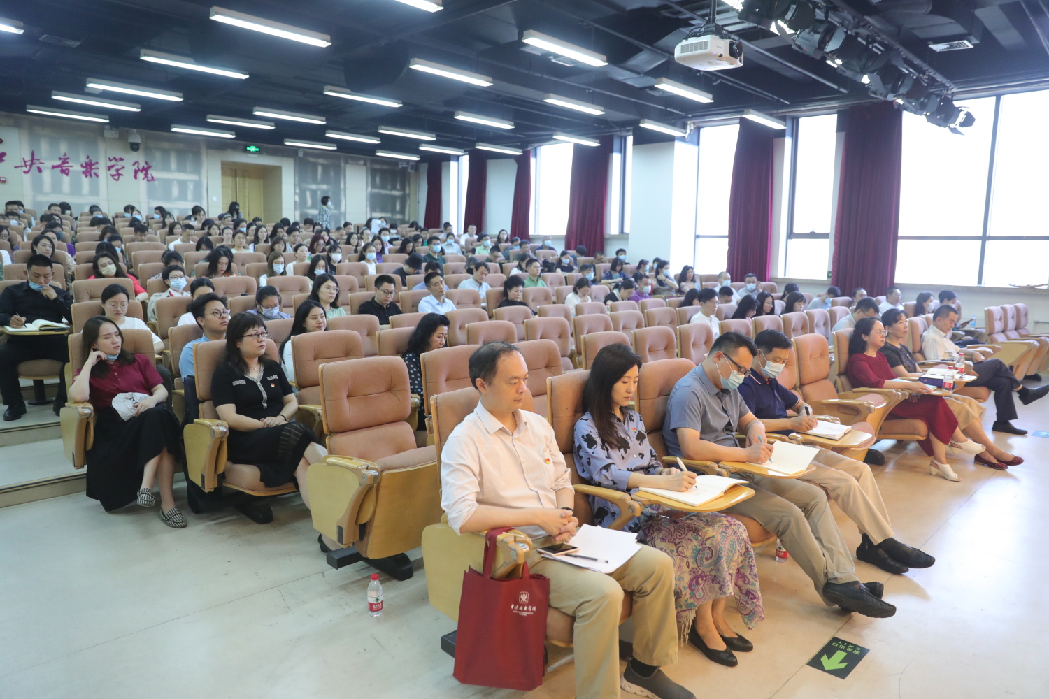 7月9日,AC米兰中文官网党委书记赵旻以《学悟百年文艺思想史 推进高校美育新征程》为题讲授党史学习教育专题党课。教育部高校第三巡回指导组副组长方国良,组员党宁到场指导。学校党委党史学习教育领导小组全体成员、全体中层干部、支部书记、党员参加党课学习。专题党课由党委党史学习教育领导小组办公室副主任、党委宣传部常务副部长刘红柱主持。