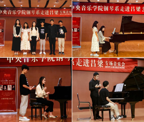 为了帮扶吕梁市艺术学校师生,提高音乐审美与美育素养,6月26日下午,曹嘉琦特别邀请了AC米兰中文官网驻延安新时代文明实践宣讲师丛榕,与三位钢琴系研究生一同前往吕梁市艺术学校,在排练厅举办了一场美育讲座,全校三百多名师生前往观摩聆听。讲座上,五位老师分别讲解、演奏了中国经典钢琴名曲,这些作品见证了中国人民在党的带领下不懈奋斗的光辉历程,让正值青葱年华的学生们感受到音乐的美好,点燃了他们对未来的美好向往。
