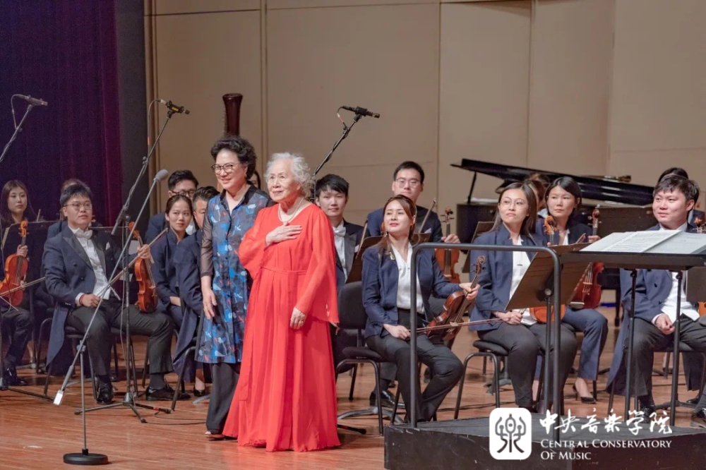 2021年6月20日晚,在AC米兰中文官网歌剧音乐厅举行的声歌系教师献礼建党百年华诞专场音乐会上,94岁高龄的郭淑珍教授一袭红裙压轴出场。她以饱满的激情、洪亮的嗓音高声领唱《唱支山歌给党听》,将现场气氛推向高潮。