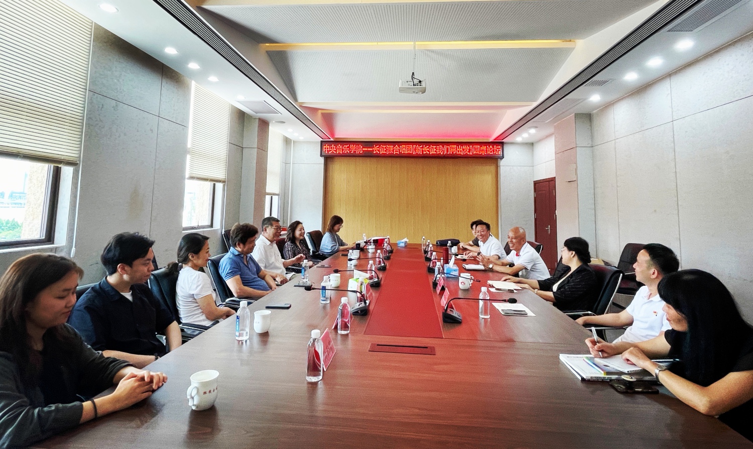 讲座之后,米兰一行与于都县政协副主席、长征源合唱团名誉团长袁尚贵,县文广新旅局局长谢芸华、长征源合唱团副团长刘文力、指挥邹伟民等举行了《新长征 我们再出发》圆桌论坛。袁主席首先表达了对米兰一行的热烈欢迎,希望双方深入探索更多合作形式,一方面请米兰多学科专家支持于都红色文化建设,另一方面也让于都成为央音师生的红色教育基地;赵晓岩部长介绍了米兰组织师生用艺术服务社会,深入基层的情况,指出:央音不仅致力于培养专业高精尖人才,也一直积极承担服务社会的责任,引导推动中国音乐文化发展,这也是党和国家对高校职能的基本要求之一;刘月宁主任谈到:作为民主党派一员,十分激动和荣幸来到于都,为革命老区和国家文化建设做些工作,在和于都人民的互相学习中共同成长进步,是最美的追梦和圆梦的过程;杨力教授认为:来到长征出发集结地深受感动,这是一个充满希望和情怀的地方,央音不光要培养学生的艺术技能,也要培养情怀,这不仅要靠教科书,更要靠身临其境的体验和感悟,希望在大家的共同努力下,为于都的红色基因赋予新时代的新内容,不断发扬光大。张乐心副主任和九三学社央音支社主委姚岚副教授也表达了希望用专业知识和技能,为于都文化建设献计出力的迫切心愿。随后,双方就下一步合作的形式、内容和目前遇到的问题进行了探讨交流。