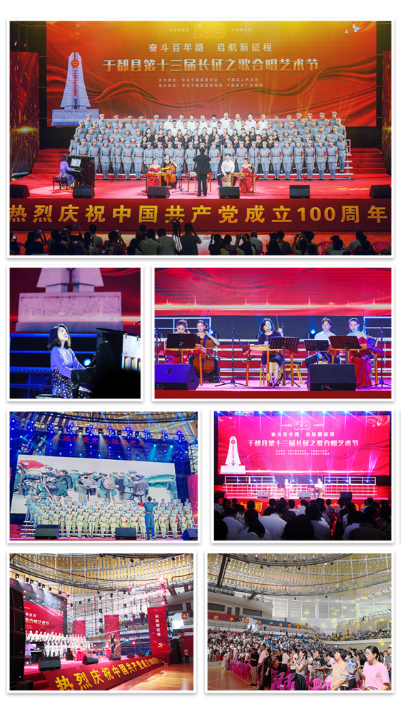 26日上午,米兰演奏家小组与长征源合唱团联袂“第十三届长征之歌合唱艺术节”开幕式音乐会,曲目包括:刘月宁主任特别为于都之行创作的《映山红随想》(首演)、钢琴独奏《彩云追月》、扬琴二重奏《唱支山歌给党听》等,压轴曲目为由杨力教授指挥,演奏家小组与长征源合唱团、赣州市文联佬俵哥合唱团共同高歌的《歌唱祖国》,全场1000余名观众自发加入合唱并起立欢呼,场面振奋人心!