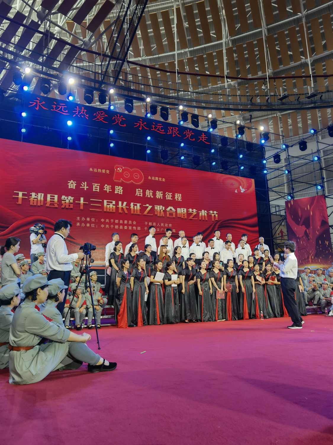 师生们来到高楼林立的于都县城,深切感受到在国家“打造老区中的特区”战略大力扶持下,于都不但经济得到极大发展,而且红色文化建设蓬勃开展,已连续举办13届“长征之歌”合唱艺术节,并于2010年成立了“长征源合唱团”,这支由红军后代组成的合唱团已在全国巡演了520场《长征组歌》,真情实感的演唱让成千上万观众受到精神洗礼,并得到习近平总书记的亲切关怀和殷切期望。